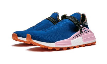 The Pharrell x adidas NMD Hu "Inspiration Pack" Powder Blue is one of four colorways of the popular sneaker by Pharrell Williams that released in November 2018. Another colorful style from Pharrell and adidas, the “Powder Blue” edition of the NMD Hu sports a blue mesh upper with a light pink TPU lace cage and midsole bumpers. The treaded outsole appears in orange. A multicolor polka-dot pattern is found on the collar, while reflective silver heel tabs and black reflective-striped laces add even more flash to complete the Pharrell x adidas NMD Hu "Inspiration Pack" Powder Blue.