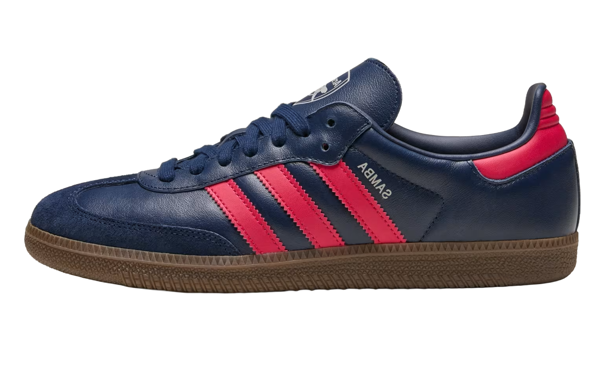Show your allegiance in true terrace style with the ADIDAS Samba "Arsenal Gunners." This men's exclusive celebrates the North London football club, blending the timeless Samba silhouette with the spirit of The Gunners. It features premium leather construction, the signature suede T-toe overlay, and a classic gum rubber outsole for superior grip and vintage appeal. Perfect for match day or everyday wear, this is an essential piece for any devoted fan's rotation.