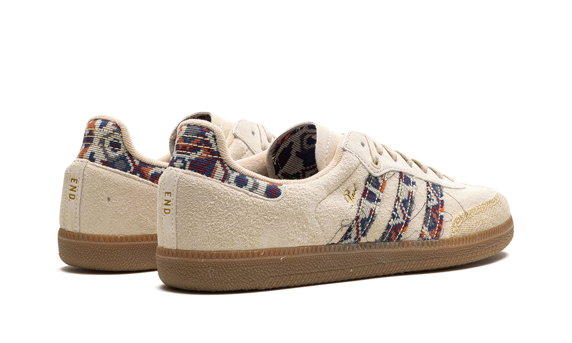 The END x adidas Samba “Past” is a collaboration by the retailer and adidas on a colorway of the retro indoor soccer shoe inspired by historical materials. The adidas Samba “Past” was part of adidas’s fan-judged Consortium Cup contest before it was released to the public. As for its design, the shoe features a cream-beige hairy suede construction with a heavy, durable tonal-colored fabric on the toe. A tapestry-like pattern on the heel and on the Three Stripes branding on the sides. “Past” replaces “Samba” branding on the lateral side of the mid-panel and co-branding is seen on the tongue. A gum rubber sole completes the look. Release date: November 23, 2023