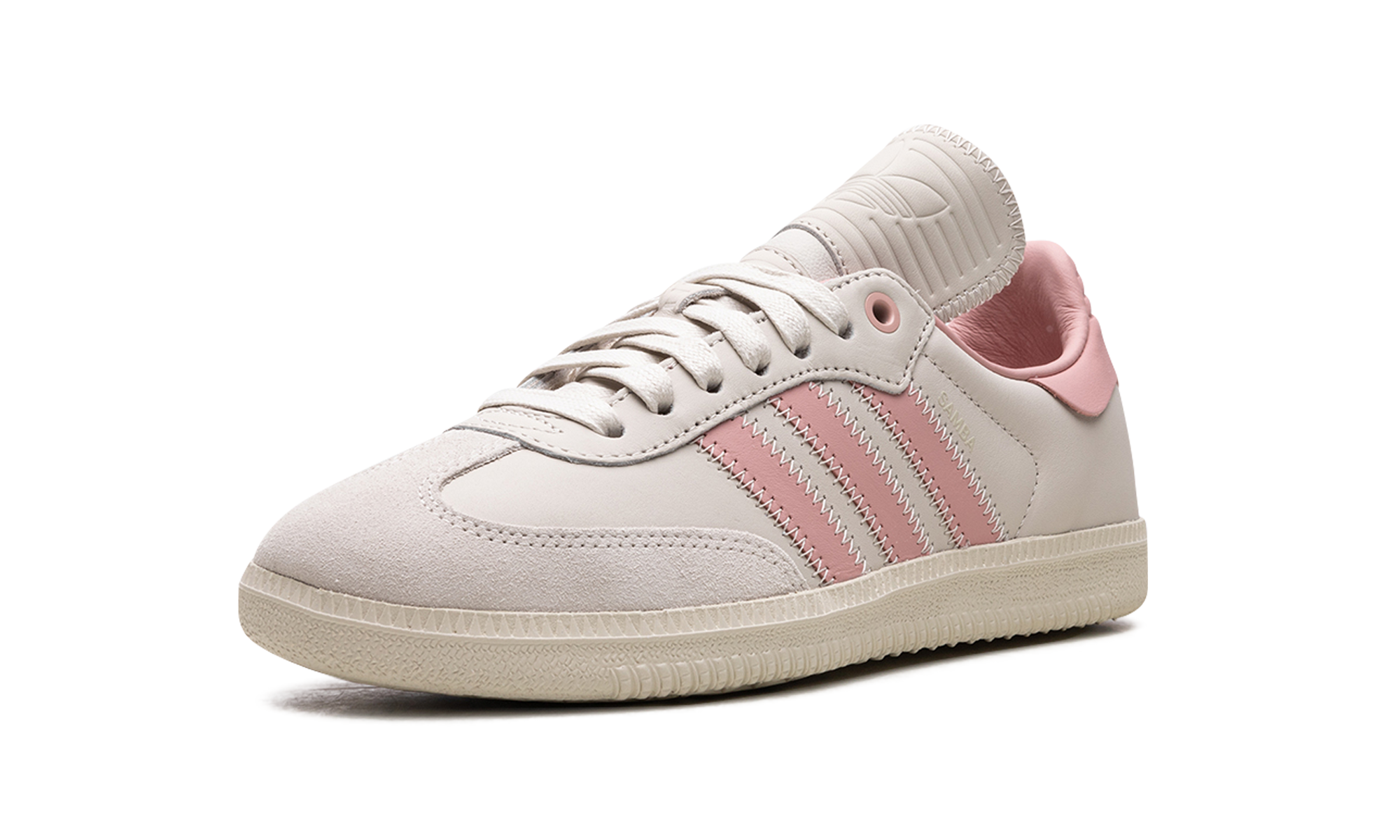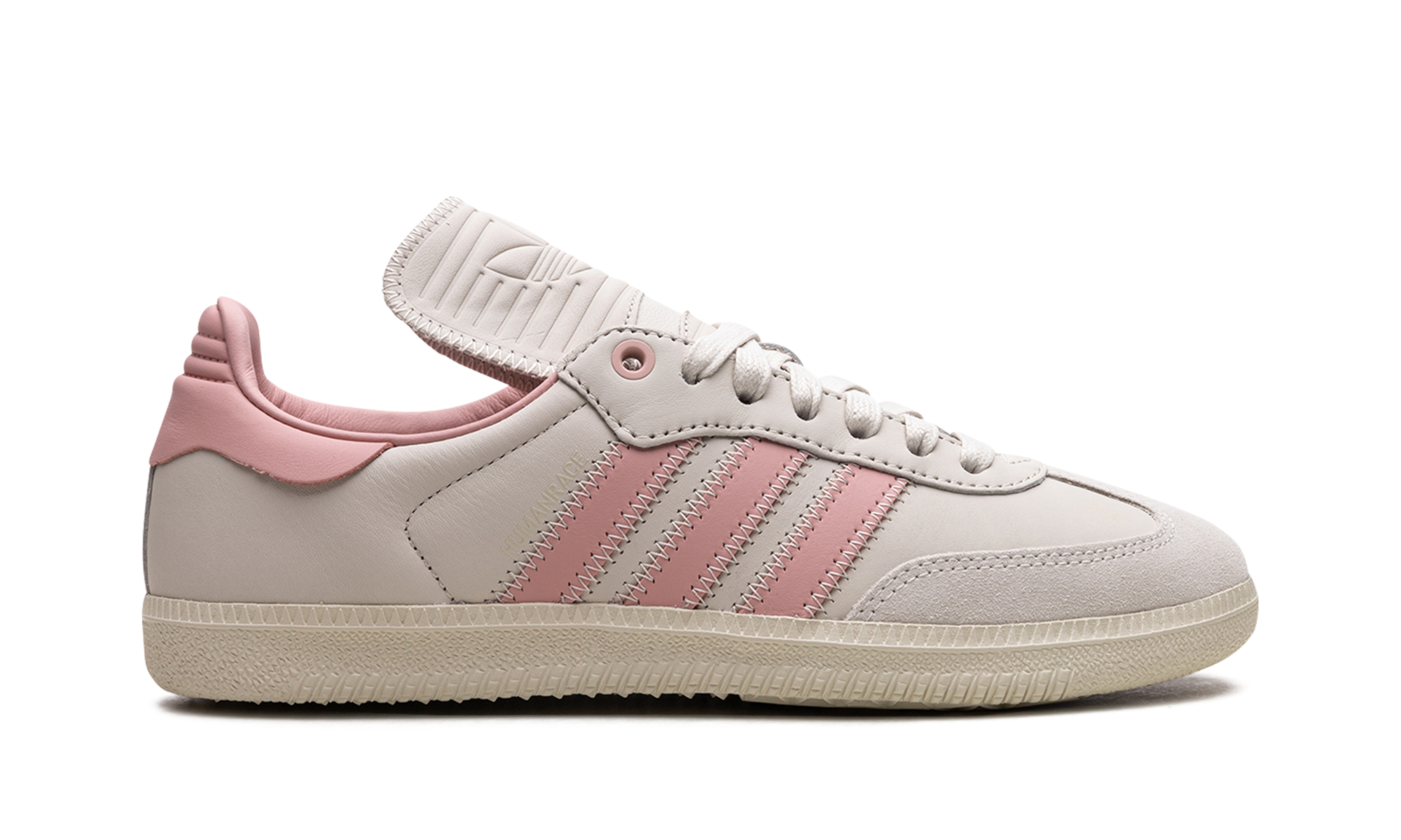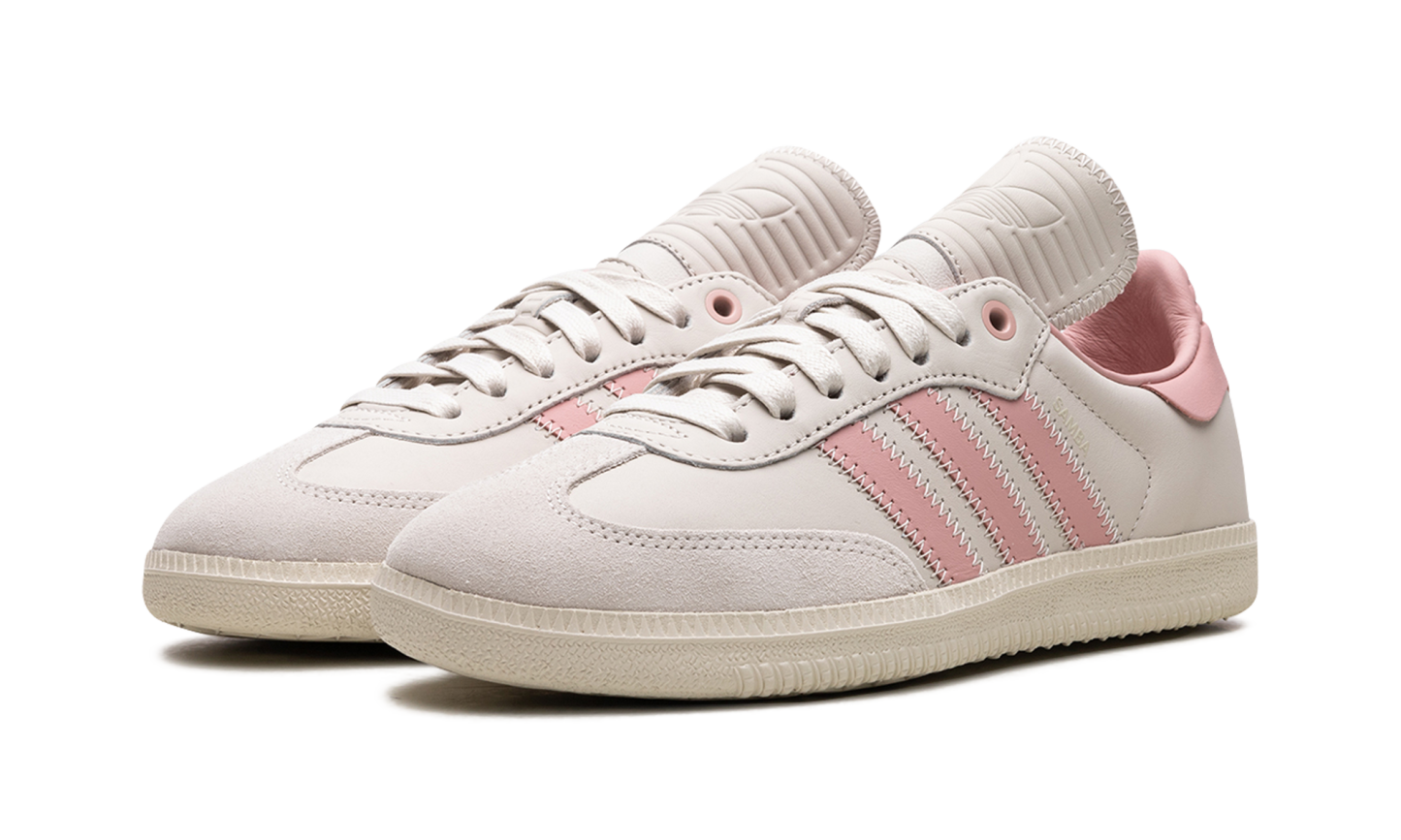 The Pharrell x adidas Samba Humanrace "Aluminum/Wonder Mauve" is a collaboration by Pharrell’s lifestyle brand and adidas on a colorway of the retro soccer shoe with pastel pink accents. In addition to releasing the Samba Humanrace in a collection of monochromatic colorways, Pharrell and adidas co-design the retro-yet-modern shoe in this versatile look that features a pleasing combination of light grey and pink. More specifically, the shoe has what adidas is calling an Aluminum leather upper with tonal suede overlays. Wonder Mauve Three Stripes branding appears on the sides. The pink hue is also seen on the leather heel tab. An Aluminum rubber sole completes the look. Release date: November 3, 2023