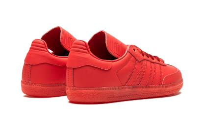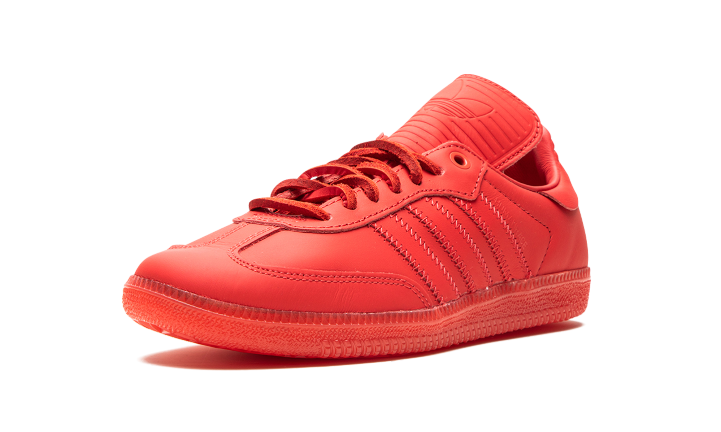 The Humanrace x adidas Samba “Red” is a collaboration by Pharrell’s lifestyle brand and adidas on an all-red colorway of the retro soccer shoe. Part of a large collection of Sambas designed in monochromatic colorways, the “Red” is complete with a red leather upper that features tonal leather overlays and Three Stripes branding. A “Humanrace” logo is found on the side. An elongated tongue gives the Samba by Humanrace a vintage soccer shoe aesthetic. Brown leather laces contrast the design. Underfoot, a red rubber sole completes the look. Release date: May 6, 2023