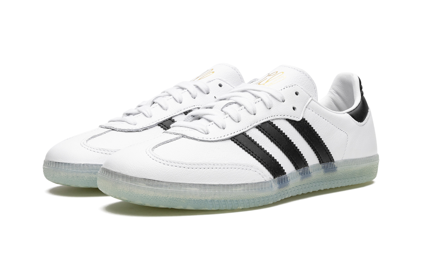 The Jason Dill x adidas Samba “White/Black” is a collaboration by the pro skater and adidas on the incredibly popular retro indoor soccer and lifestyle shoe. Dill, a legendary skater and co-founder of F*cking Awesome, a popular skate and streetwear brand, joins forces with adidas on yet another colorway of the Samba silhouette. The shoe features a white leather construction with contrasting black leather Three Stripes branding on the sides. Gold “Dill” script appears on the white leather tongue. Underfoot, an icy translucent rubber sole completes the look. Release date: April 1, 2023