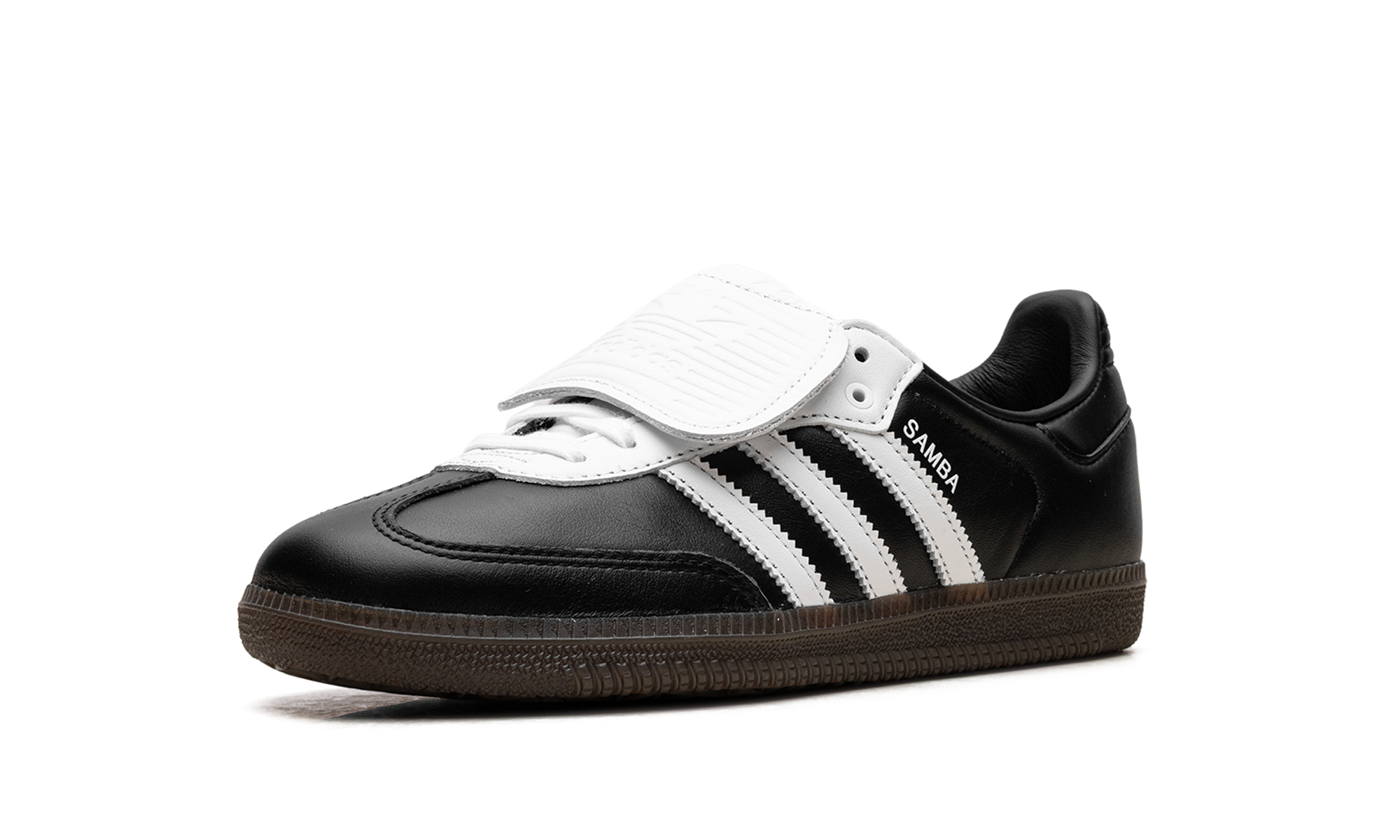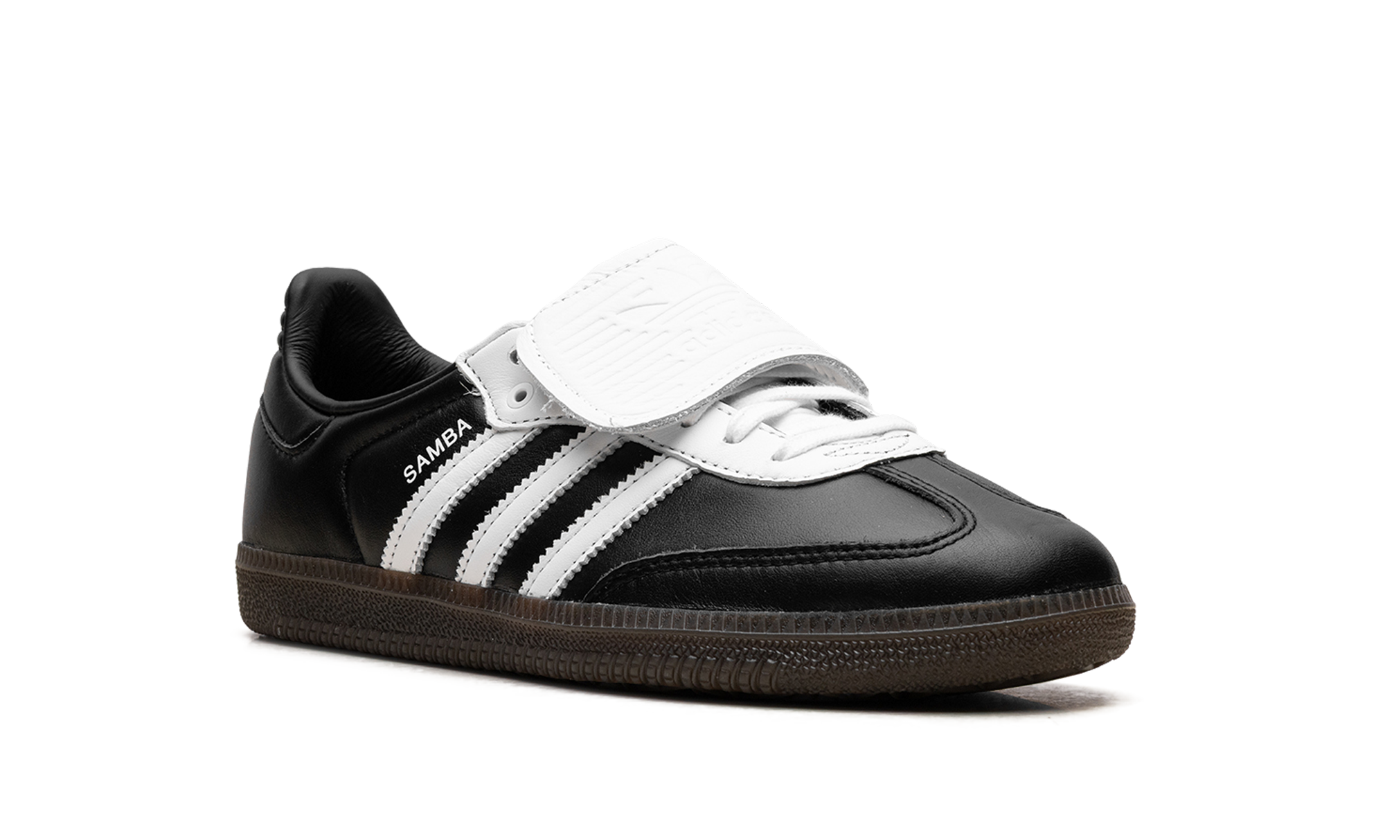 Experience the evolution of a legend with the adidas Samba LT "Core Black Cloud White" sneaker. This stylish update to the iconic Samba silhouette is a head-turner, featuring the classic full-grain black leather upper, serrated white 3-Stripes, and a suede T-toe. The most notable detail is the oversized, fold-over tongue, a bold nod to its football boot heritage that brings a sporty, fashion-forward edge. Finished with the signature gum rubber outsole for excellent grip, this sneaker is a timeless staple for any rotation.