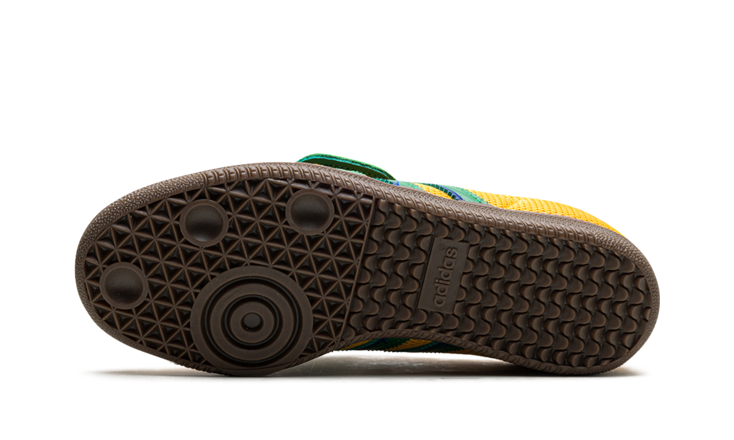 The adidas Samba LT “Preloved Yellow” is a unique colorway of the popular silhouette with a mesh construction and other eye-catching features. The “Preloved Yellow” is complete with a Preloved Yellow mesh upper and green and blue Three Stripes branding on the sides. A classic “Samba” logo appears on the lateral side of the midfoot, while green leather can be found on the heel. The foldover-style green tongue nods to the Samba’s soccer shoe roots. A dark gum rubber sole completes the look.