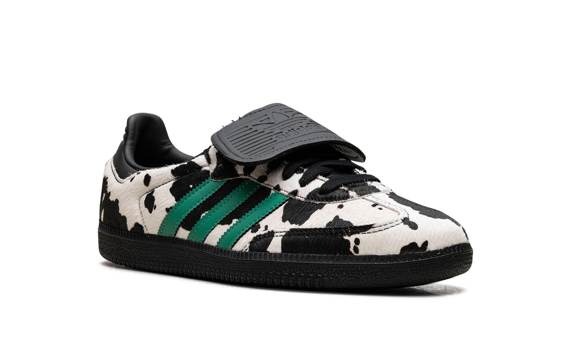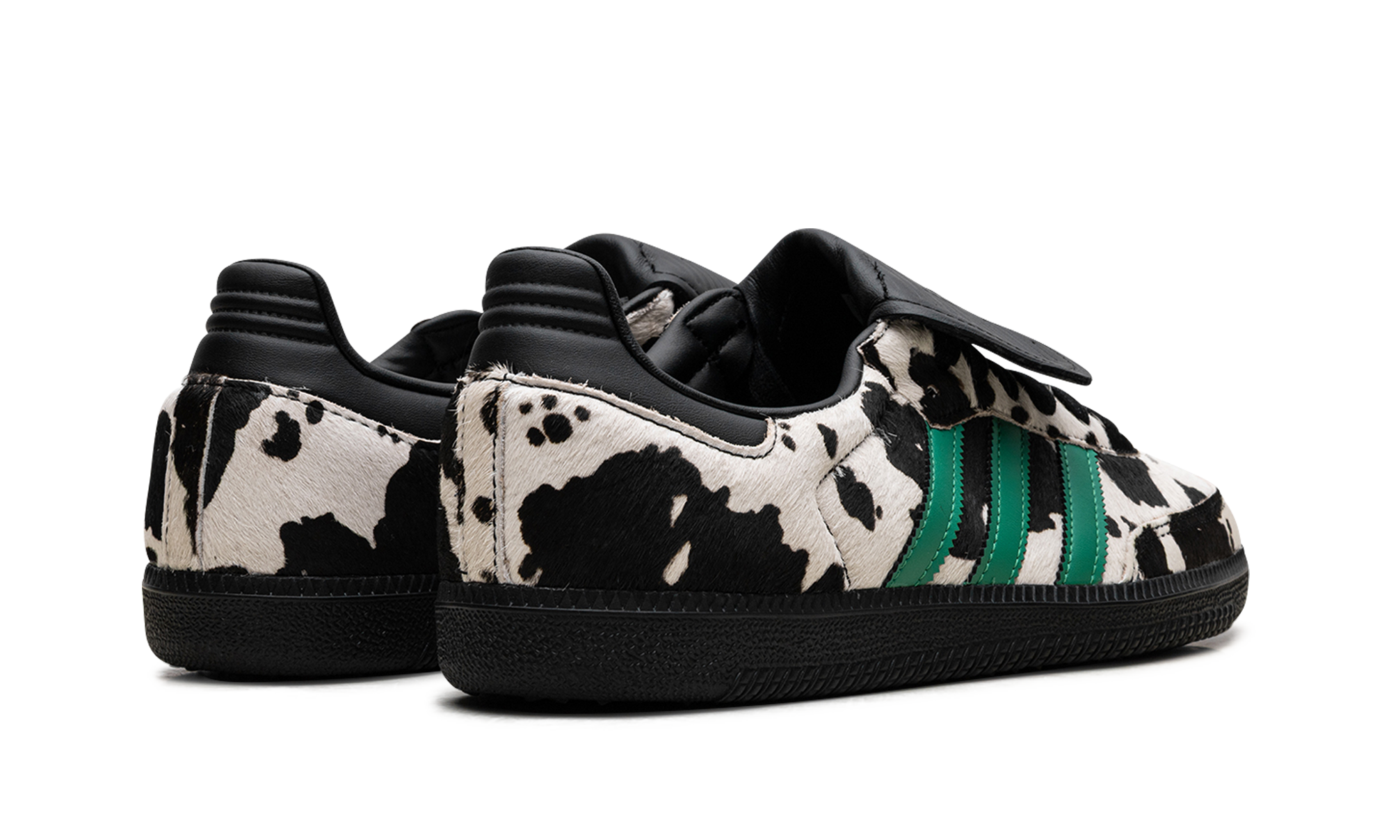 Unleash your wild side with the adidas Samba LT Wmns "Cow Print Black White" sneakers! This women's-exclusive style revitalizes the iconic Samba silhouette with a playful, black and white cow print overlay crafted from plush faux pony hair. The design is instantly recognizable with the signature serrated 3-Stripes and a heritage-inspired long, fold-over tongue that nods to the shoe's soccer roots. Finished with smooth leather accents and a durable black rubber sole, these comfortable and bold kicks are ready to make a statement in your street-style rotation.