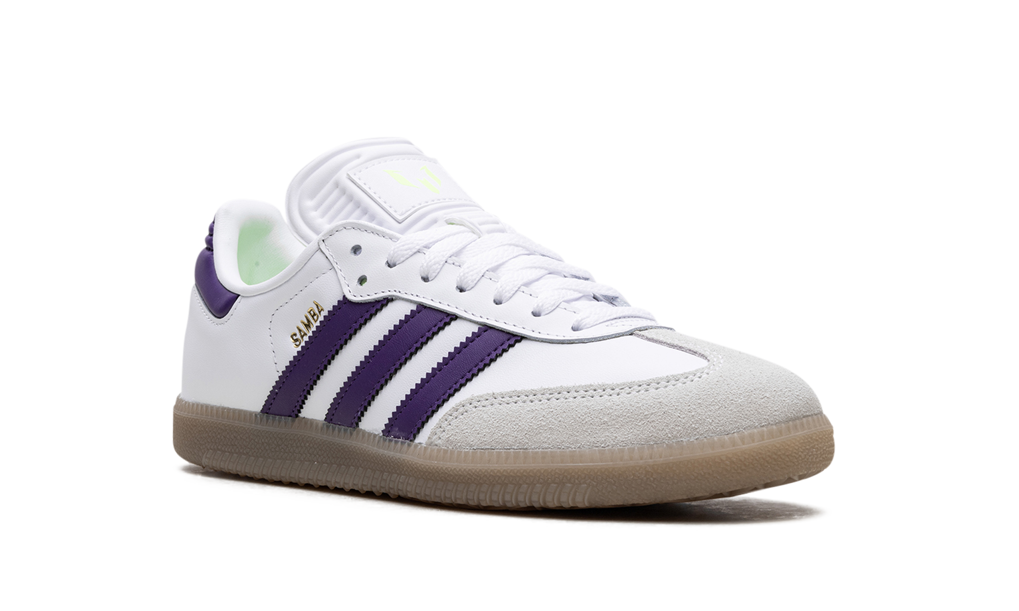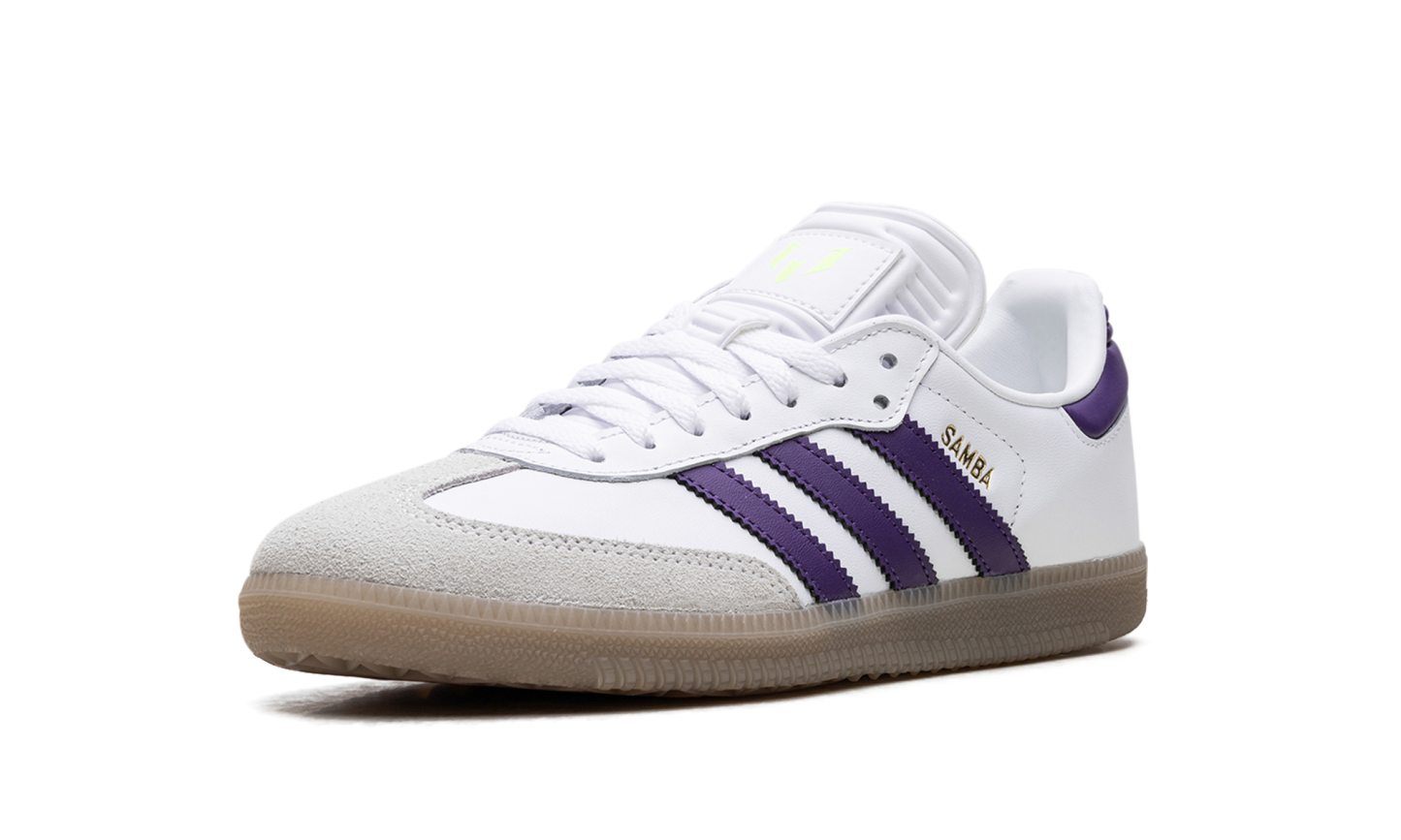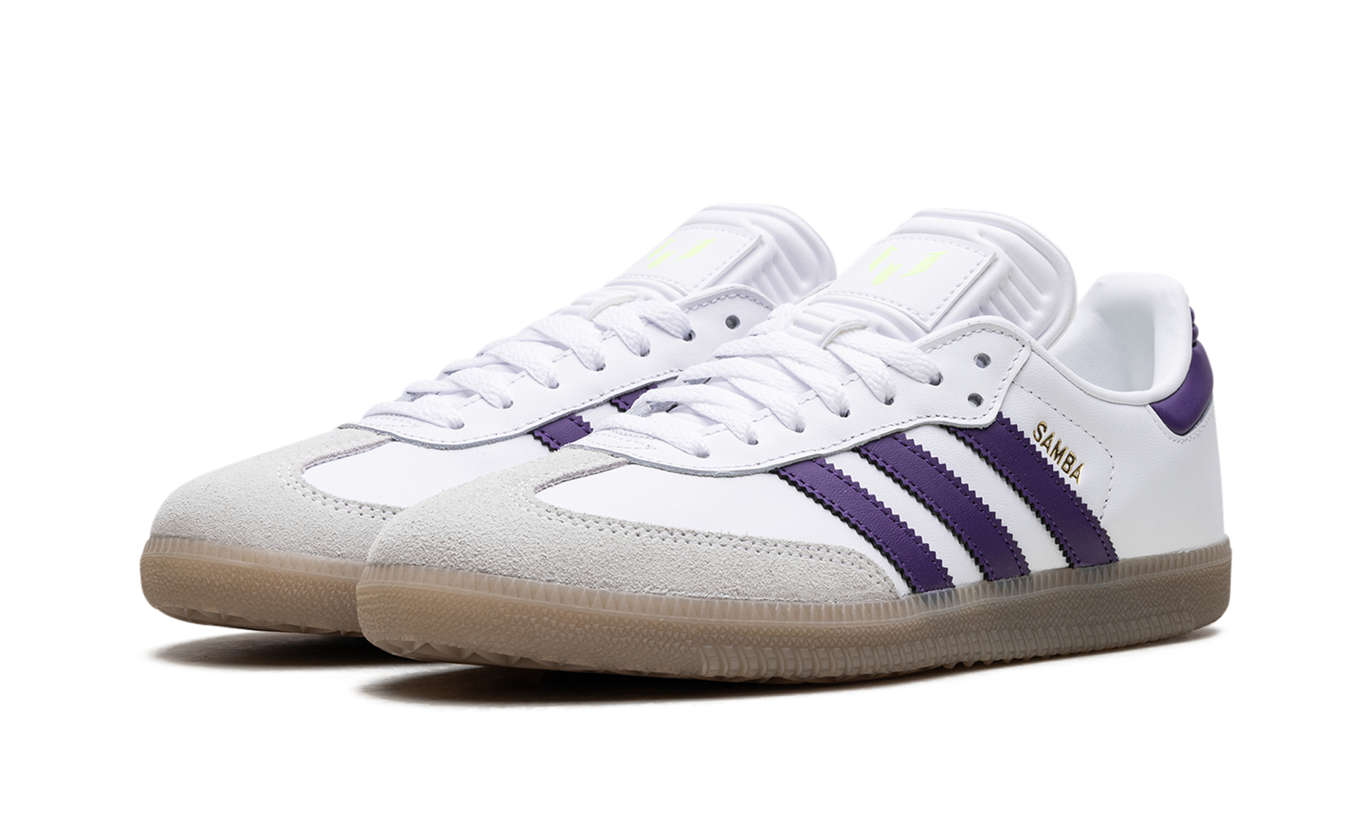 Step into a world where sport meets greatness with the Samba Messi "Core Black / Gold Metallic / Gum". This celebrated collaboration with Lionel Messi features a sleek Core Black leather upper, accented by striking Gold Metallic details. Enjoy superior cushioning and a timeless design that’s perfect for making a powerful statement on the streets.