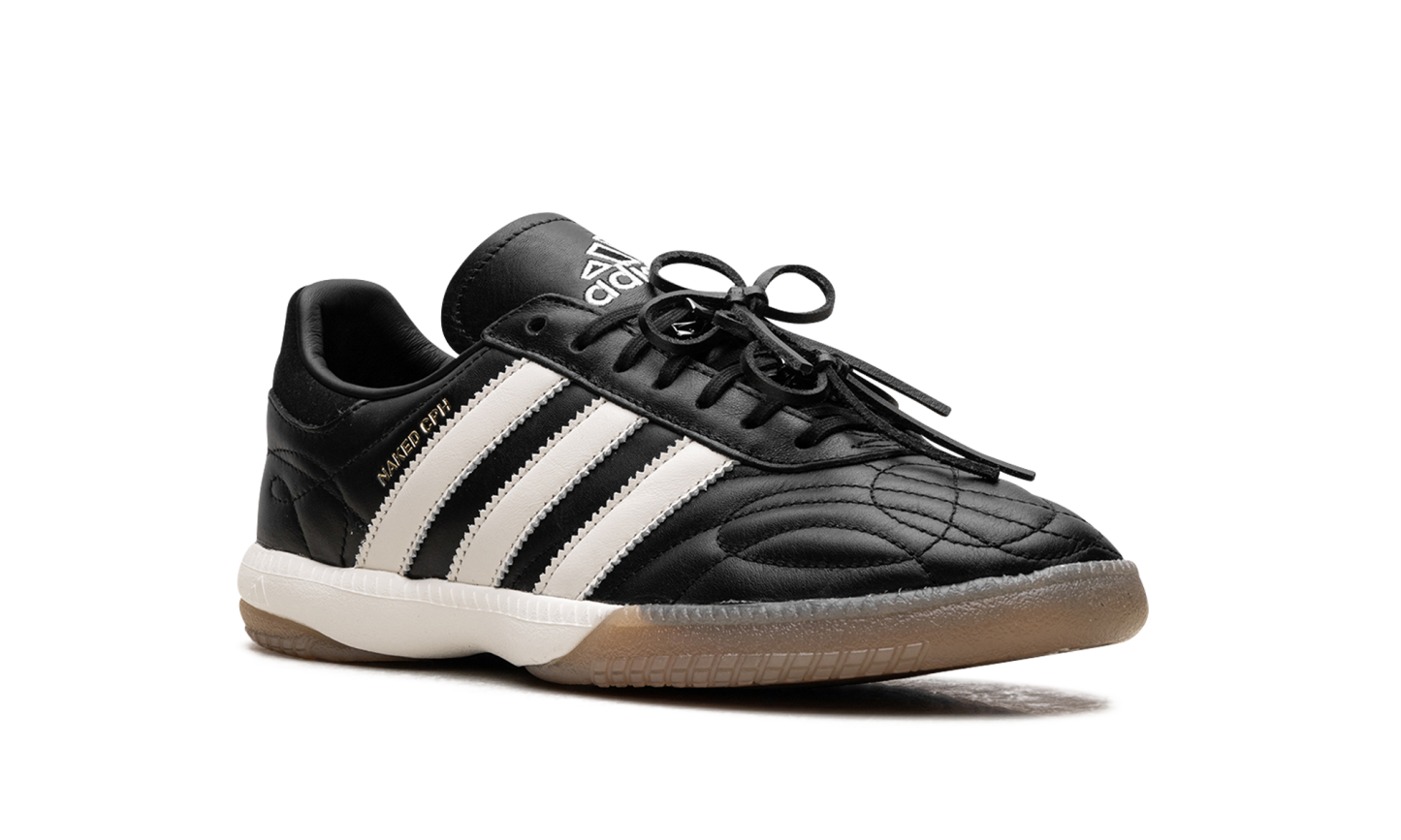 The Samba Millenium "Naked x Maha - Core Black" brings together the creative forces of Copenhagen and Amsterdam for a sophisticated take on the 2000s icon. This collaboration features a premium "Core Black" leather upper with refined textures and minimalist branding that reflects the "Naked" and "Maha" design philosophies. The Millenium silhouette offers a more substantial, athletic profile than the OG Samba, while the clean colorway ensures it remains a versatile lifestyle staple. It is a sleek, high-end masterpiece for the discerning trendsetter.