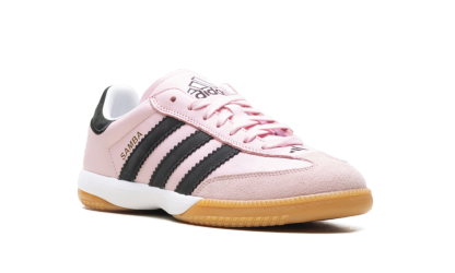 Step into a streamlined take on a classic with the Adidas Samba Millenium "Clear Pink / Black / Gum". This celebrated shoe features a smooth leather upper in soft Clear Pink, contrasted with sharp Black accents. Its futuristic silhouette and classic gum sole deliver a comfortable fit and a fresh look that’s perfect for making a sophisticated statement every day.
