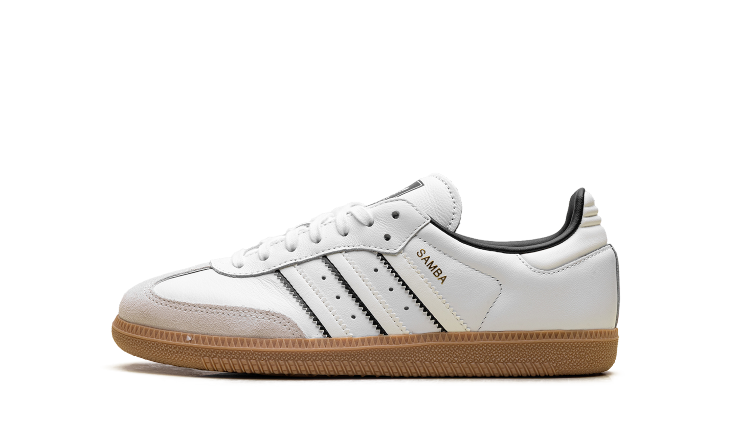 Step into a timeless classic with the ADIDAS Samba OG "Cloud White Off White Core Black." These sneakers honor a legendary football-inspired silhouette, offering crisp, versatile style for any rotation. Featuring a premium leather upper in shades of white and contrasting 'Core Black' details, this design maintains the iconic look with the famous serrated Three-Stripes and a durable gum rubber outsole. It’s the perfect blend of heritage, quality, and effortless cool for everyday wear.