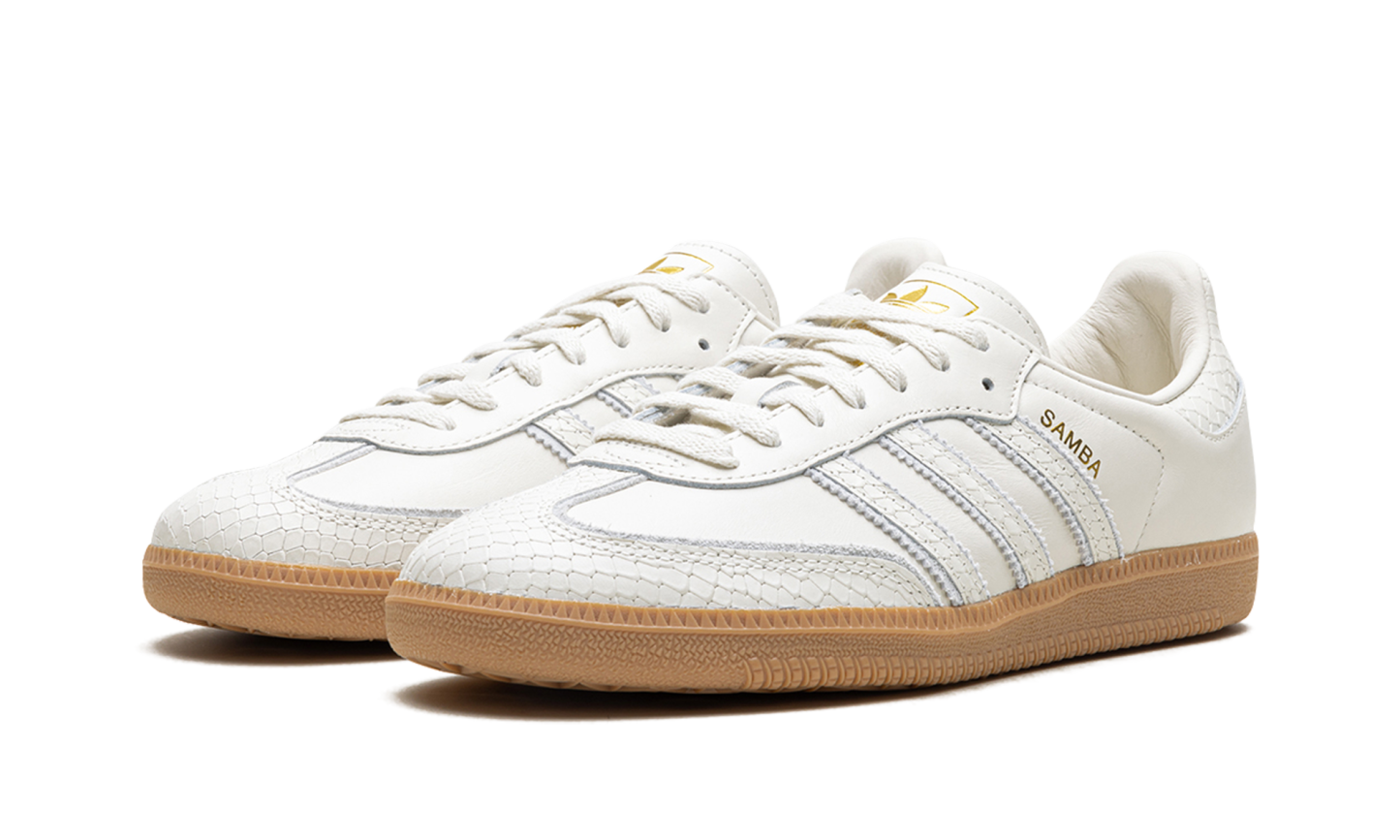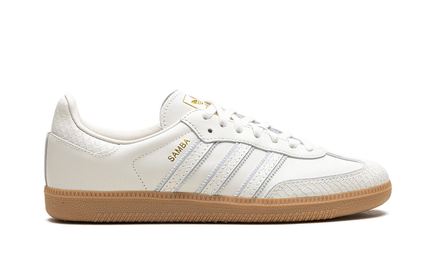 Step into a classic with the Adidas Samba OG "Snakeskin White." This iconic silhouette blends heritage style with a unique snakeskin-textured upper. Featuring a clean design, premium materials, and signature Samba details, this sneaker offers both comfort and versatile appeal.