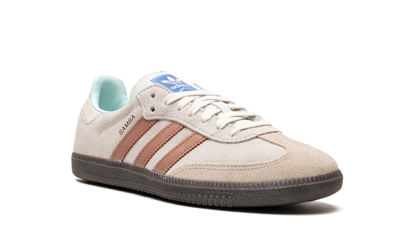 The adidas Samba “Crystal White/Clay” is a colorway of the retro soccer shoe with an earth tone design. The sneaker is complete with a beige-colored suede upper that features a slightly dark shade of beige suede on the toe overlay. The leather Three Stripes branding on the side is designed with a clay hue. A gold “Samba” logo appears on the lateral side of the mid-panel while classic “adidas Samba” branding is found on the tongue. A dark brown rubber sole puts the finishing touches on the colorway.