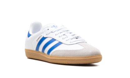 Unleash classic style on the next generation with the Adidas Samba OG GS, the essential White Blue sneaker. Perfect for active Grade School feet, this shoe features a durable leather upper and the unmistakable suede T-toe overlay, rooted in football heritage. The bold blue accents pop against the clean white base, while the low-profile gum rubber sole provides non-stop traction and a timeless aesthetic. Give your young superstar a piece of footwear history built for today’s fast pace.