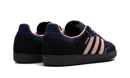 Step into a rich, sophisticated aesthetic with the Adidas Samba OG Wmns "Black / Wonder Mauve / Indigo". This celebrated women's sneaker features a black suede upper complemented by sleek Indigo Three Stripes and Wonder Mauve accents. Enjoy superior cushioning and a design that’s perfect for making a stylish statement with a subtle pop of color.