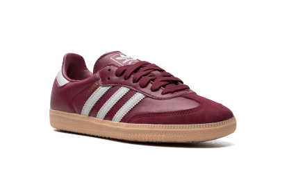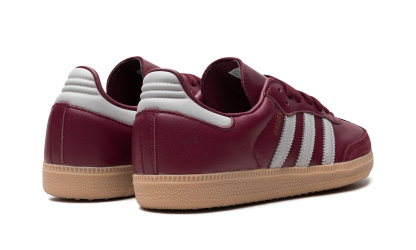 Step out in style with the Adidas Samba OG "Burgundy". This classic sneaker is presented in a deep burgundy colorway, providing a touch of refined elegance. The iconic 3-Stripes and gum rubber outsole stay true to the original design, delivering a timeless and versatile option for your wardrobe.