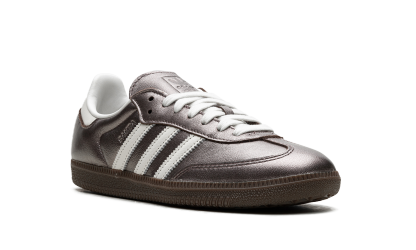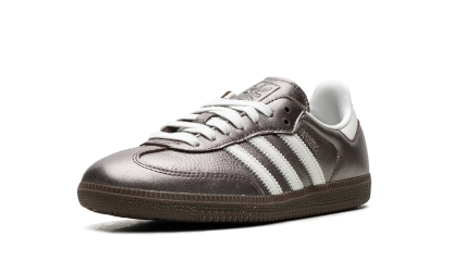 Make a statement with the Adidas Samba OG "Metallic Purple/White." This iconic silhouette receives a bold update with a vibrant metallic purple upper. The crisp white accents provide a striking contrast, creating a unique and eye-catching take on a classic.