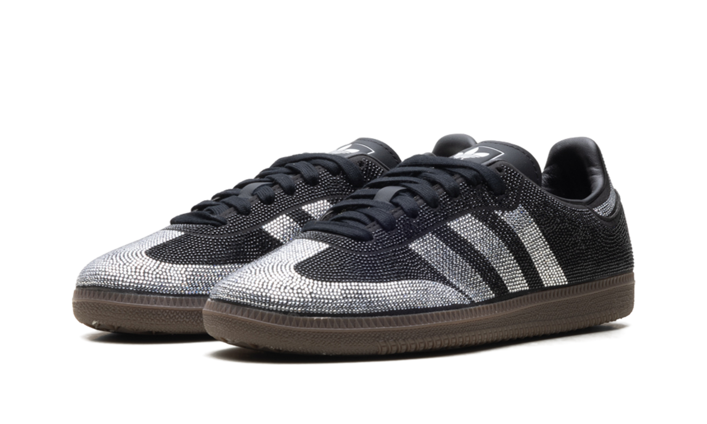 Turn every sidewalk into a spotlight with the adidas Samba OG WMNS "Rhinestone Black Silver", model IH9052. This ultra-glamorous reimagining of the iconic pitch classic features a black textile upper completely encrusted in shimmering silver rhinestones. The signature Three Stripes and T-toe overlay are brilliantly defined by the light-catching crystals, while the traditional gum rubber outsole provides a grounded, vintage contrast. Perfect for those who demand high-fashion brilliance, these sneakers offer a dazzling, luxurious twist on an all-time terrace favorite.