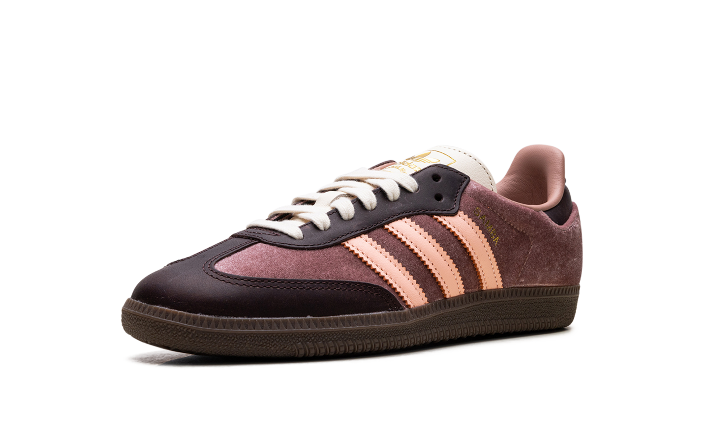 Add a luxurious touch to your rotation with the adidas Samba OG Wmns "Warm Clay Clear Orange" sneaker! This iconic silhouette is reimagined with a plush Warm Clay velvet upper and sophisticated suede details, offering a chic, textural upgrade. Pops of Clear Orange on the 3-Stripes and heel tab provide a warm, contrasting accent. Finished with the signature gum rubber sole, it perfectly blends sports heritage with premium street style for a confident, fashionable look.