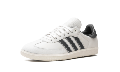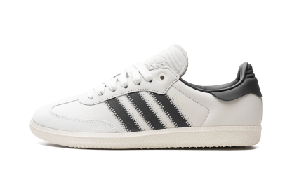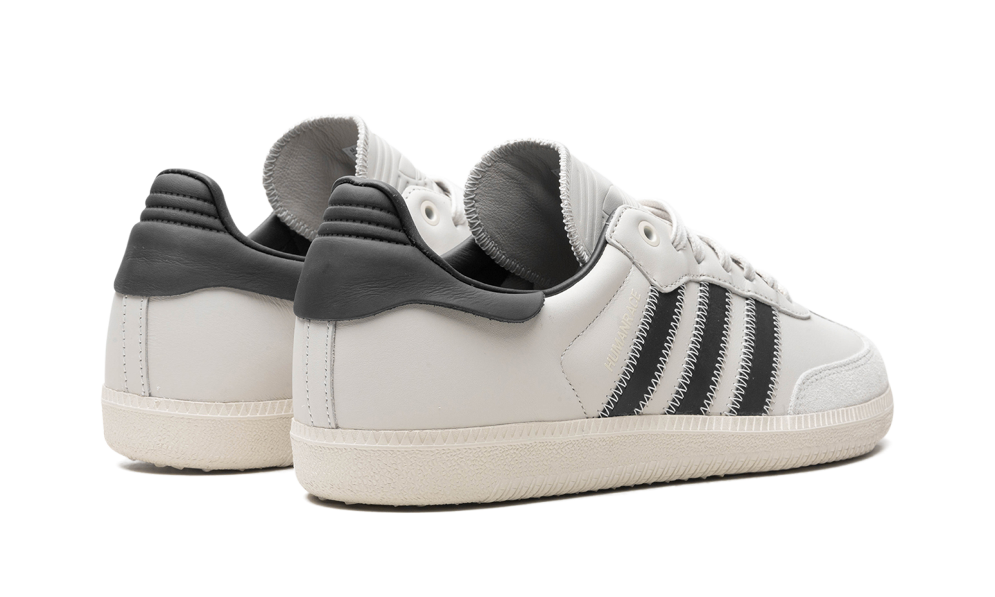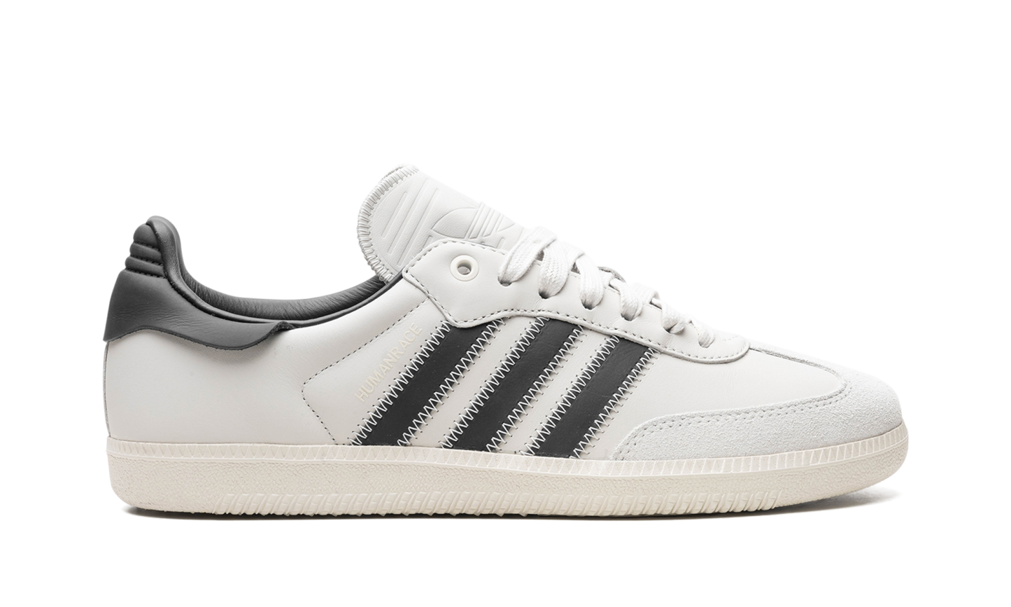The Pharrell Williams x adidas Samba Humanrace “Aluminum/Core Black” is a collaboration by the recording artist and fashion designer’s lifestyle brand on the retro shoe. The adidas Samba Humanrace in “Aluminum/Core Black” features an Aluminum-colored leather upper with a tonal suede overlay on the toe. On the sides, Core Black leather Three Stripes contrasts the shoe’s crisp white appearance. Additional Core Black leather also seen on the leather heel tab. An Aluminum rubber sole completes the look.