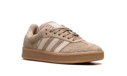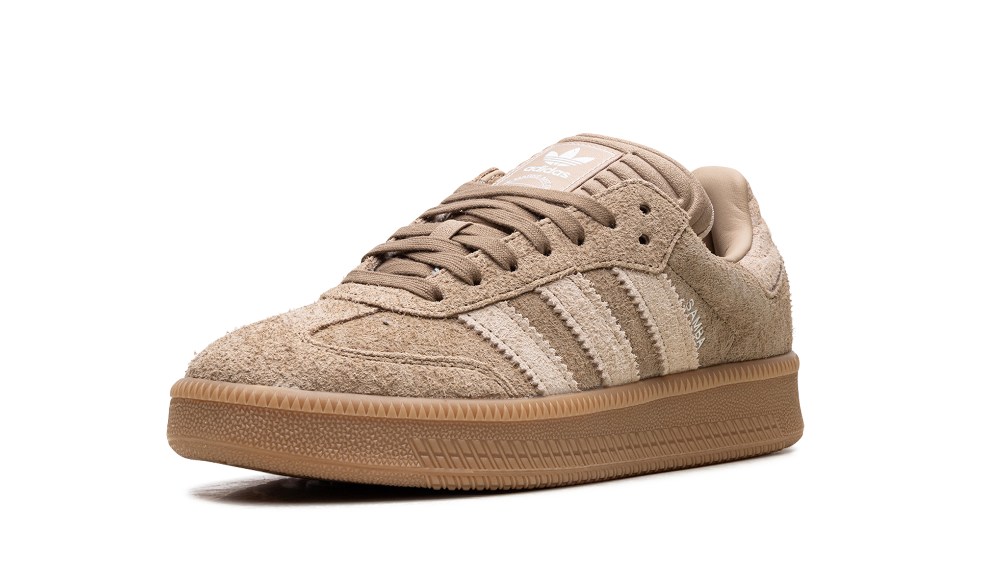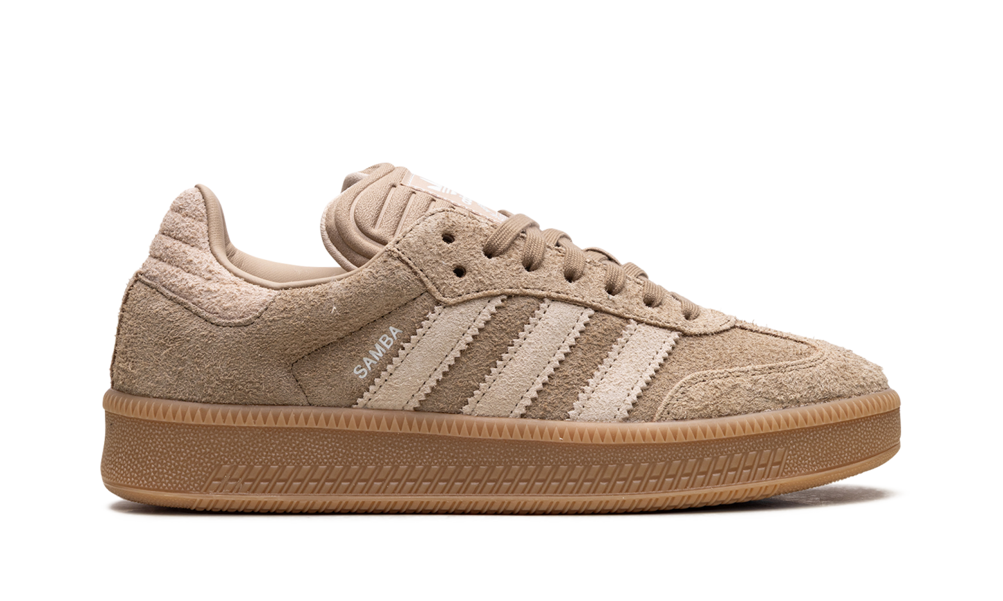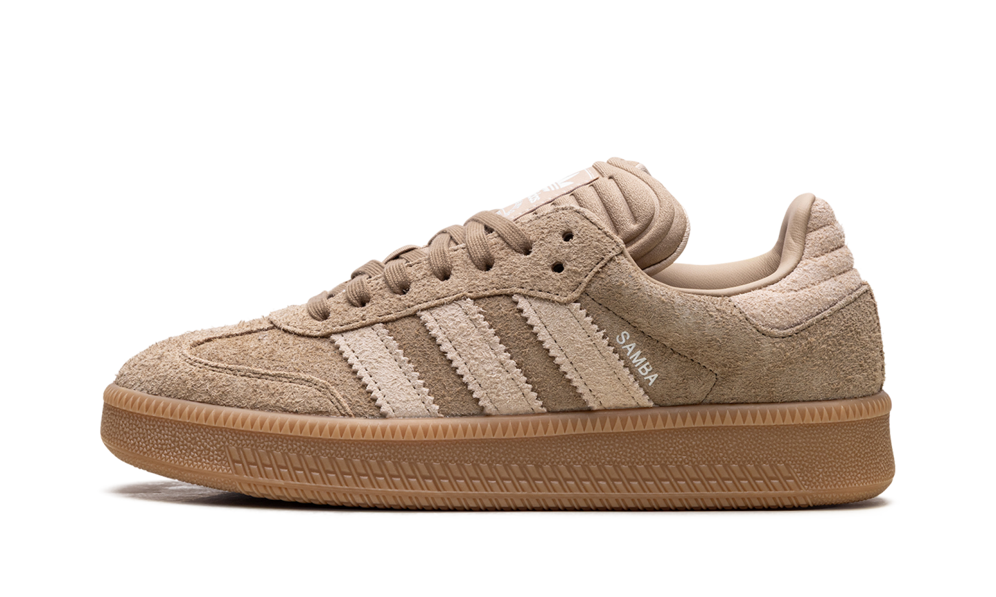 Experience the enlarged classic with the Adidas Samba XLG "Cardboard Magic Beige." This version of the iconic indoor soccer silhouette ups the ante with a chunky, elevated design. The upper is constructed from premium materials in a mix of "Cardboard" and "Magic Beige" for a sophisticated, neutral color palette. Key features include the signature T-toe design, a padded collar and tongue for enhanced comfort, and an extra-thick platform gum sole that amplifies its street-ready aesthetic. This sneaker is a bold, modern take on an Adidas legend.