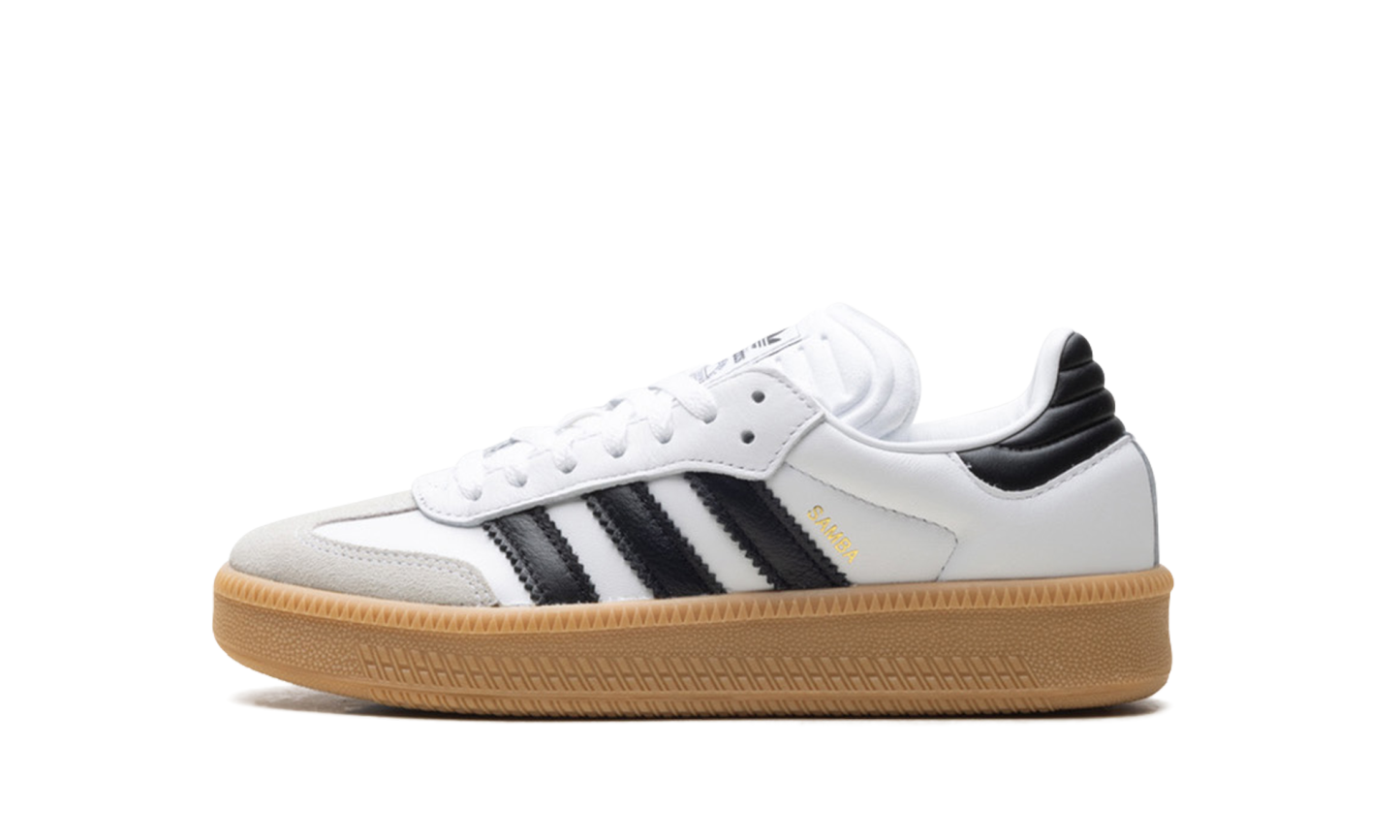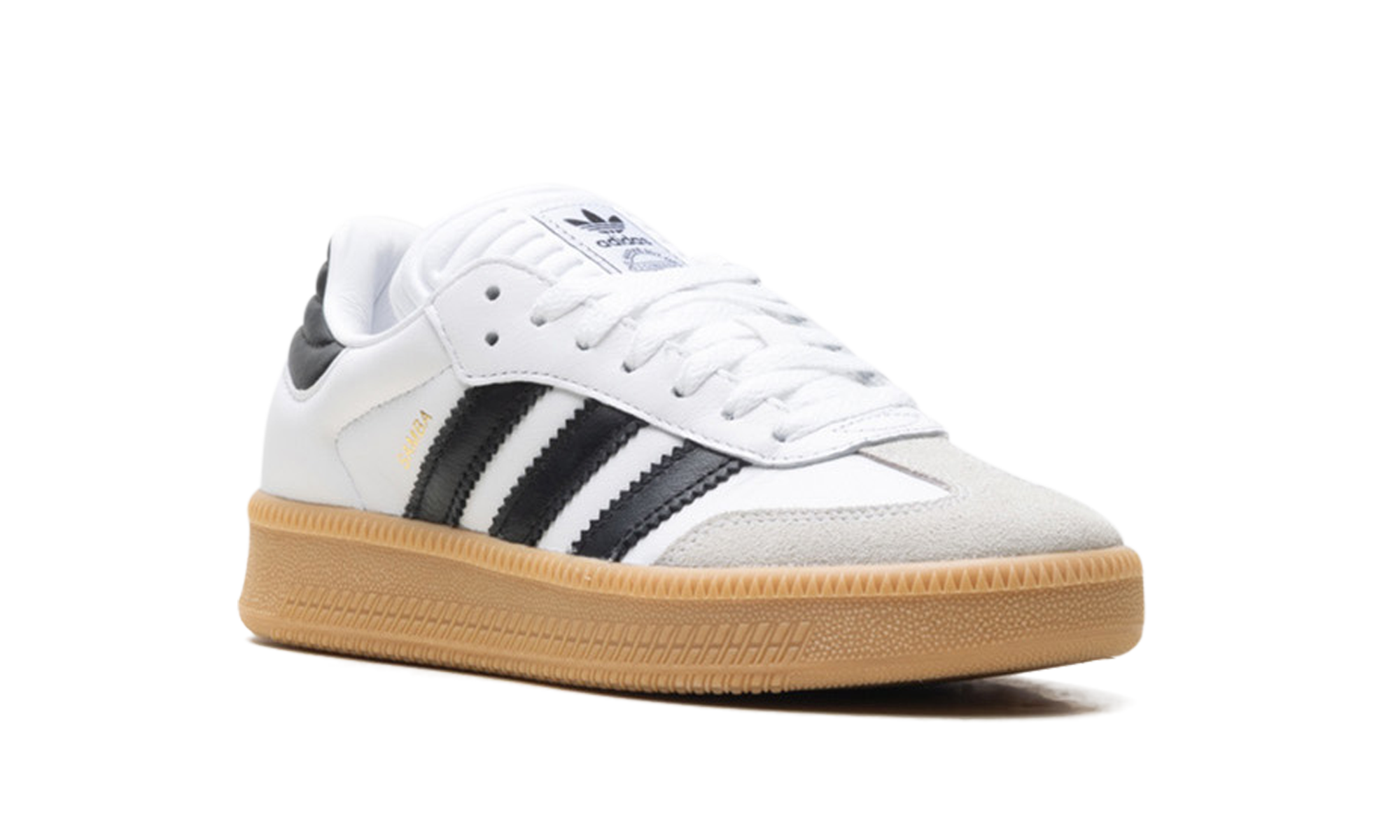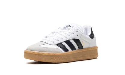 Step into a classic with a modern twist in the Samba XLG GS 'White Black Gum', a shoe that takes the iconic football silhouette and elevates it. This grade-school model, a.k.a. the "Samba XLG", features a clean White leather upper contrasted by Black serrated Three-Stripes and a signature suede toe cap. The oversized, thicker midsole provides a stylish, exaggerated look and extra cushioning, all finished with a classic Gum rubber outsole. Perfect for daily wear and making a bold street-style statement.