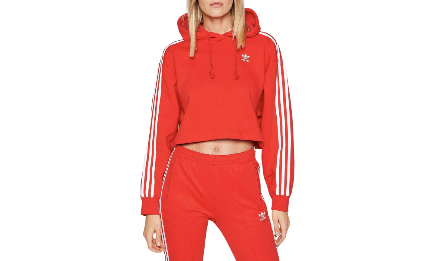 Step into effortless style with the Adidas Short Hoodie Wmns "Vivid Red". This comfortable women's pullover is crafted from soft fleece, designed with a modern cropped fit and an adjustable hood. The bold Vivid Red hue provides a stylish pop of color, making it a perfect, cozy layer for mixing and matching high-waisted looks.