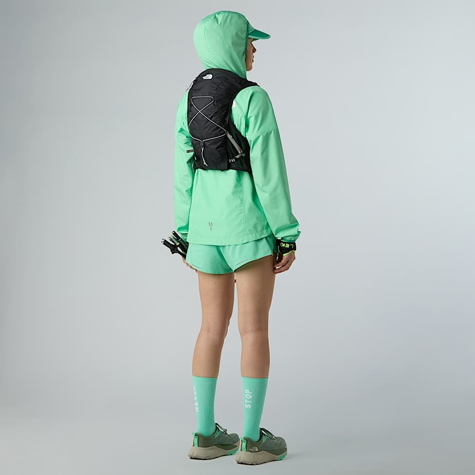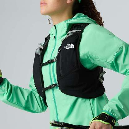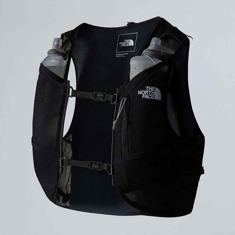 - The Sunriser Run Vest 8 is one-part vest, one-part backpack. The 8-litre pack is designed to hold everything you need for a long day on the trail, while the bungee system can hold extra snacks, a water filter or an extra layer you can pull on when the temperature drops. There are five pockets in total consisting of two snack pockets, two water bottle pockets and a secure-zip phone pocket. And if that wasn't enough space, there's a trekking-pole carry system on the rear of the backpack for steep uphill sections and hilly terrain. Side compression provides a custom fit for your torso and minimises bouncing when you’re running. Plus, with two 500-ml soft flasks included and a 2-litre bladder pocket with internal routing for a hose, you won't be short on hydration.