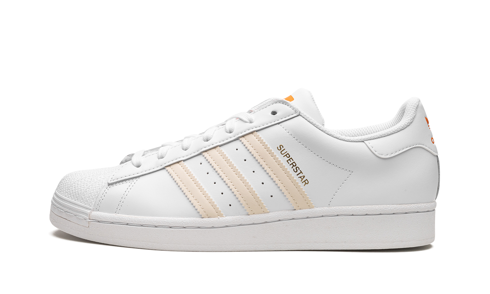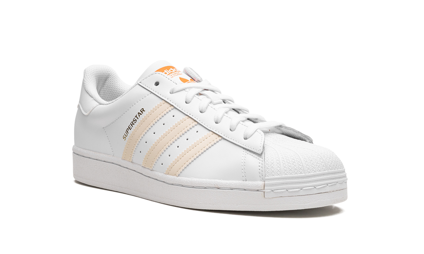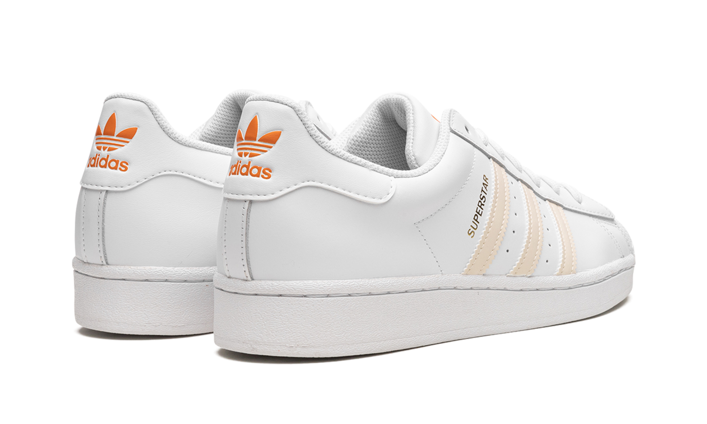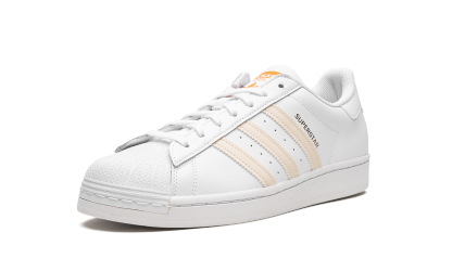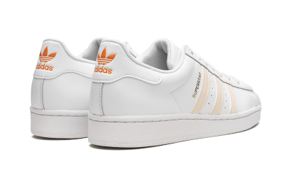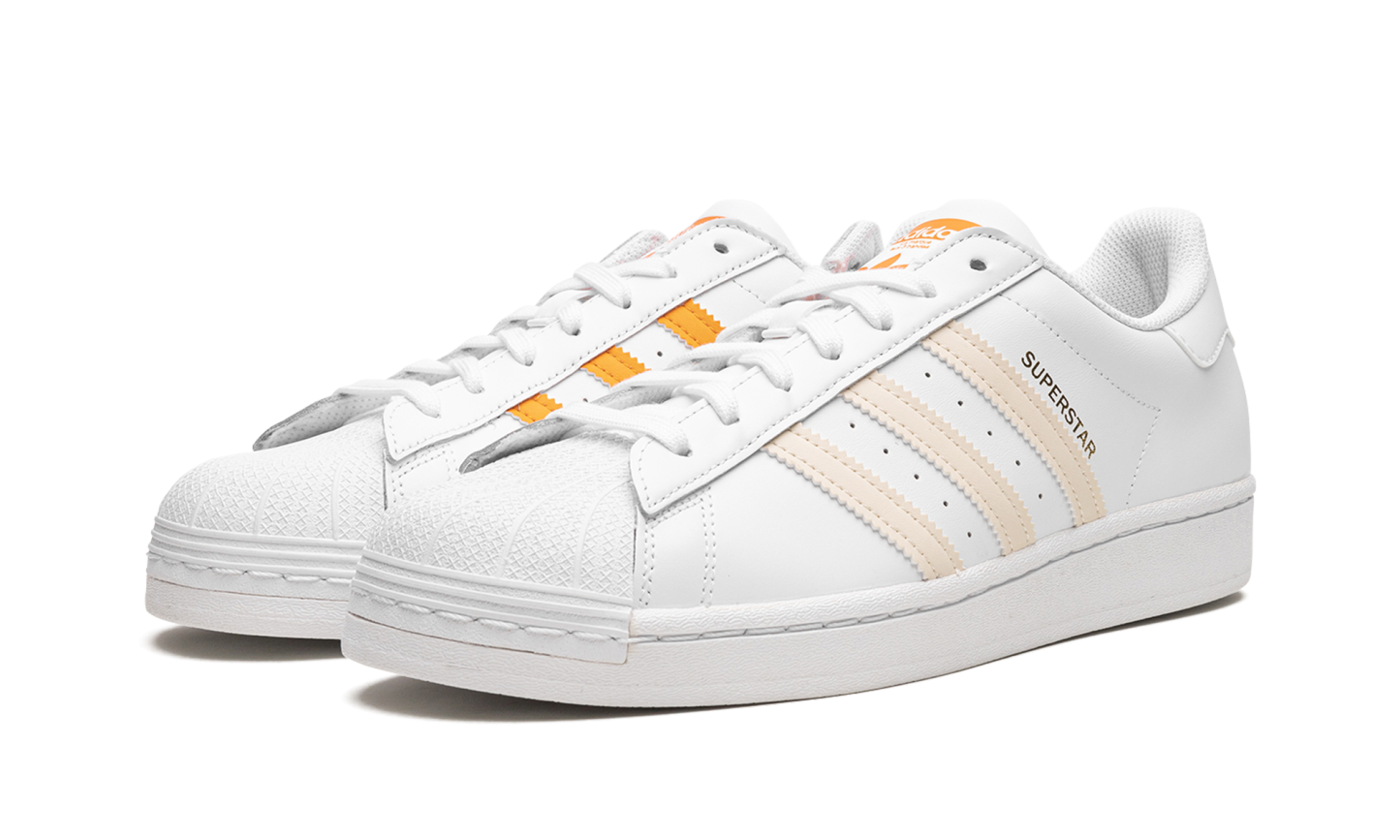 The Superstar 'Citrus' shoe features a classic design with a vibrant citrus colorway, offering a fresh and bold addition to any sneaker collection.