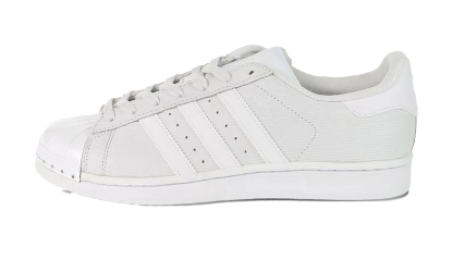 The Superstar 'Cloud White Grey' shoe features a classic design in a clean white and grey colorway, offering a versatile and timeless addition to any sneaker collection.