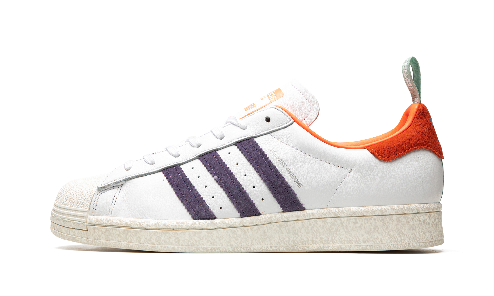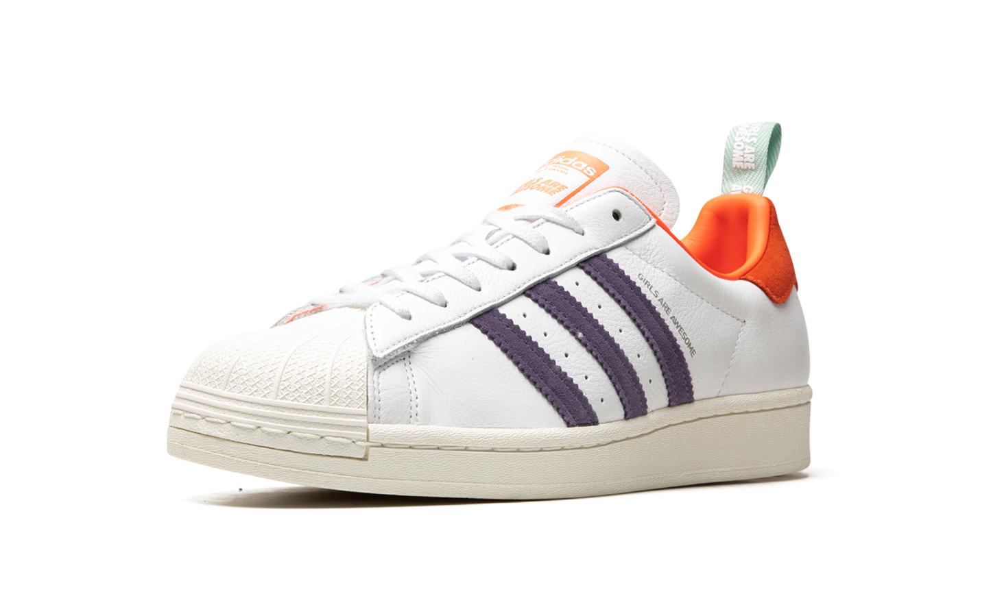 The Superstar 'Girls Are Awesome' shoe features a design in collaboration with Girls Are Awesome, offering a vibrant and empowering take on the classic Superstar silhouette.