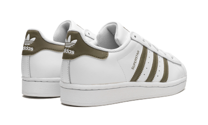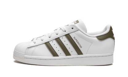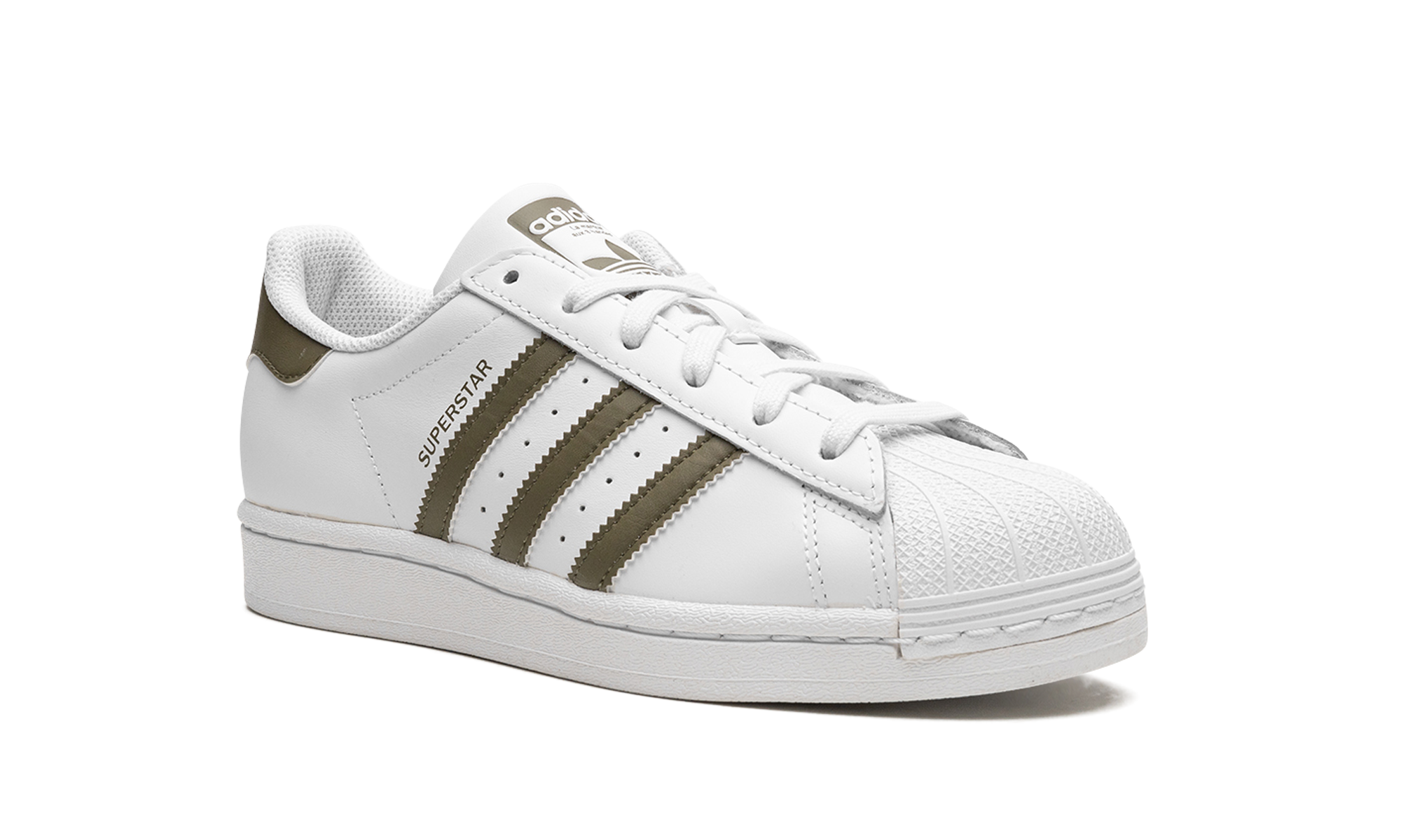 The Superstar GS 'Olive' shoe features a classic design in a rich olive colorway, making it a versatile and stylish addition to any sneaker collection.