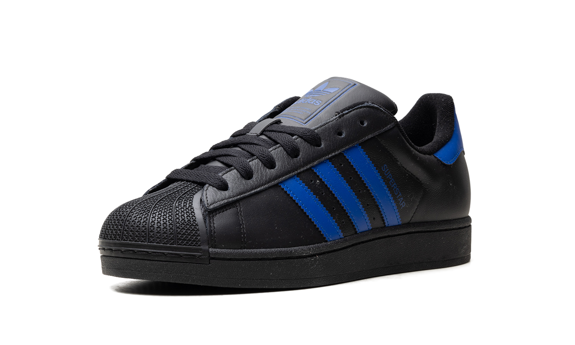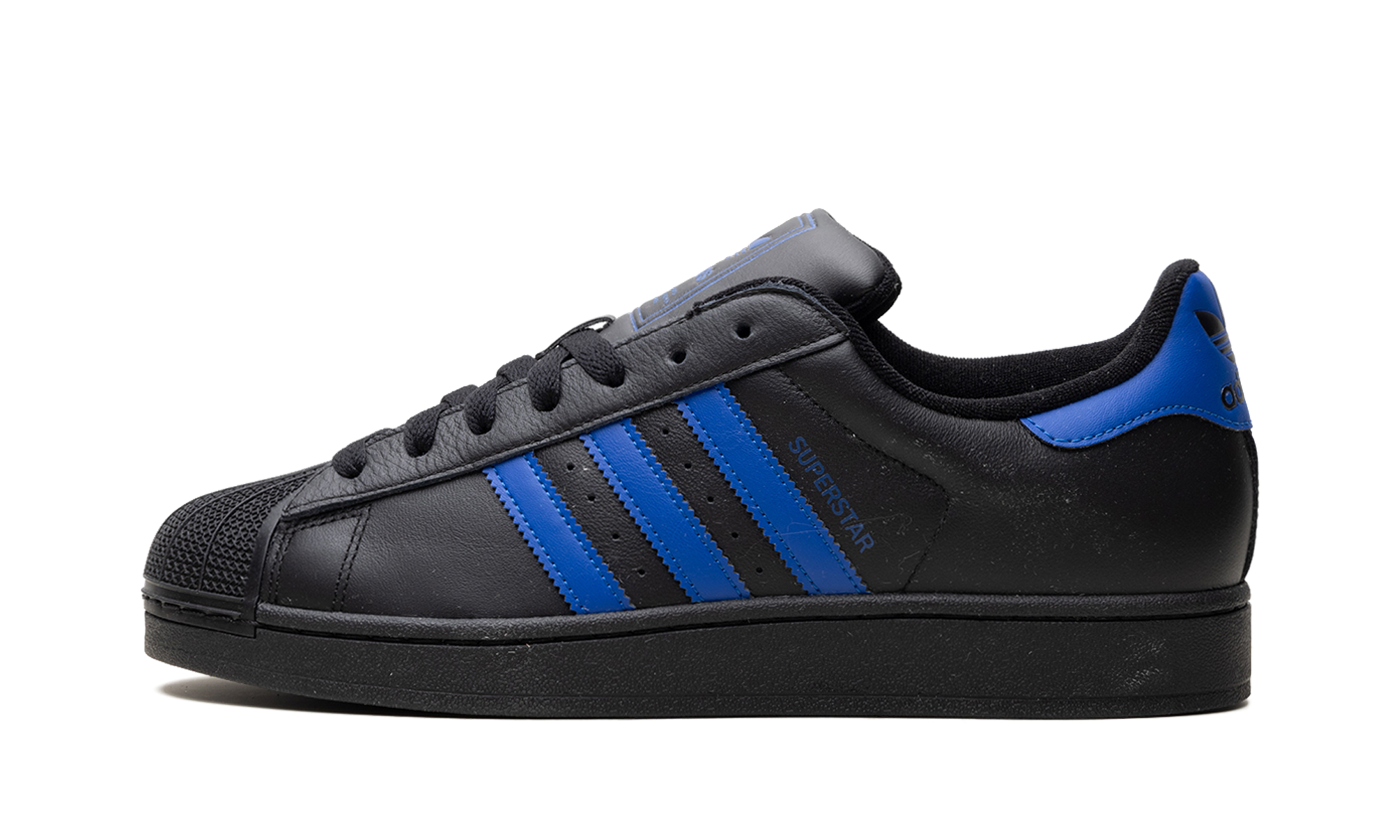 The Superstar II 'Core Black Blue Cloud White' shoe features a classic black upper with blue accents and cloud white details, perfect for everyday wear.