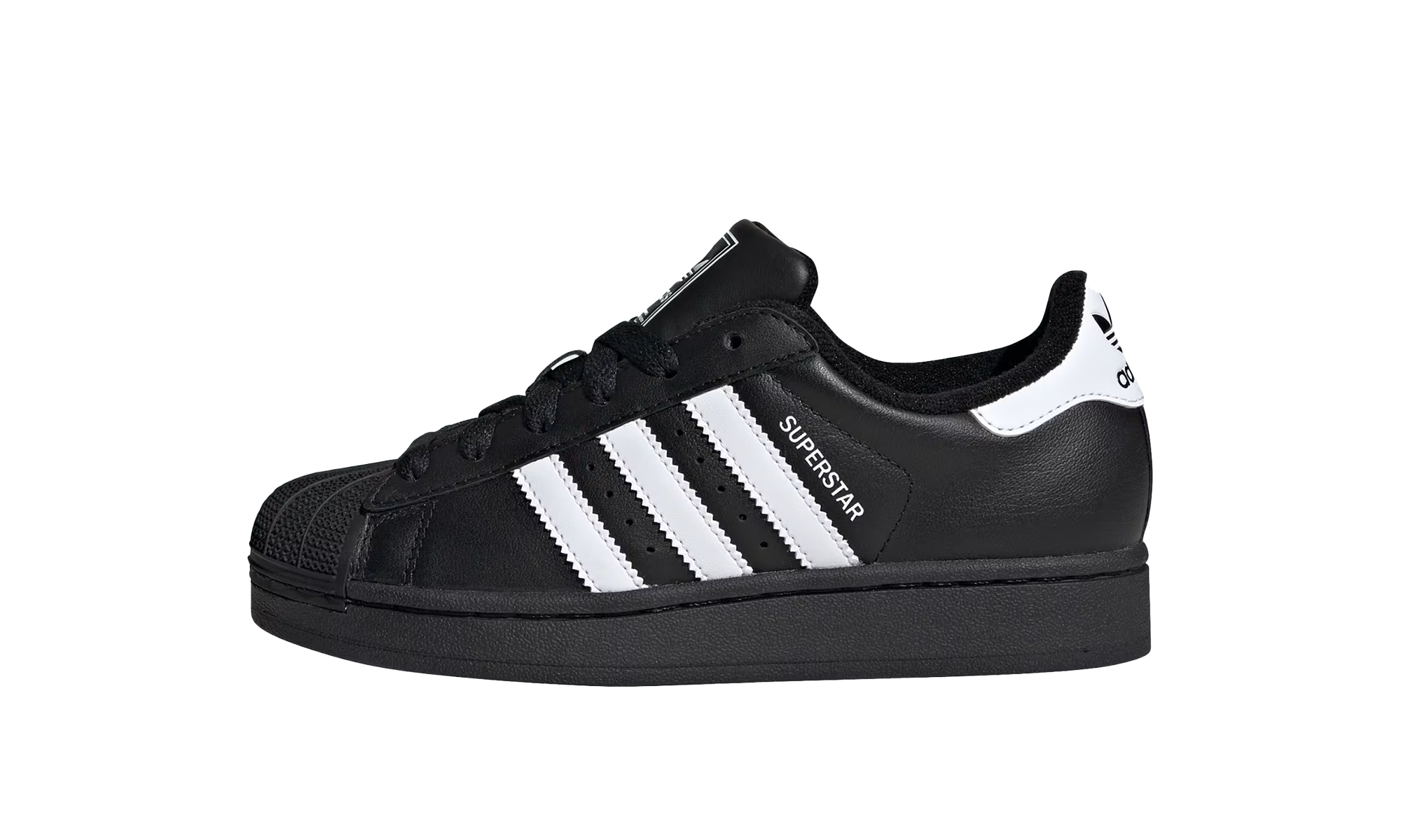 The Superstar II GS 'Black White' shoe features a classic two-tone design, offering a versatile and timeless addition to any sneaker collection.
