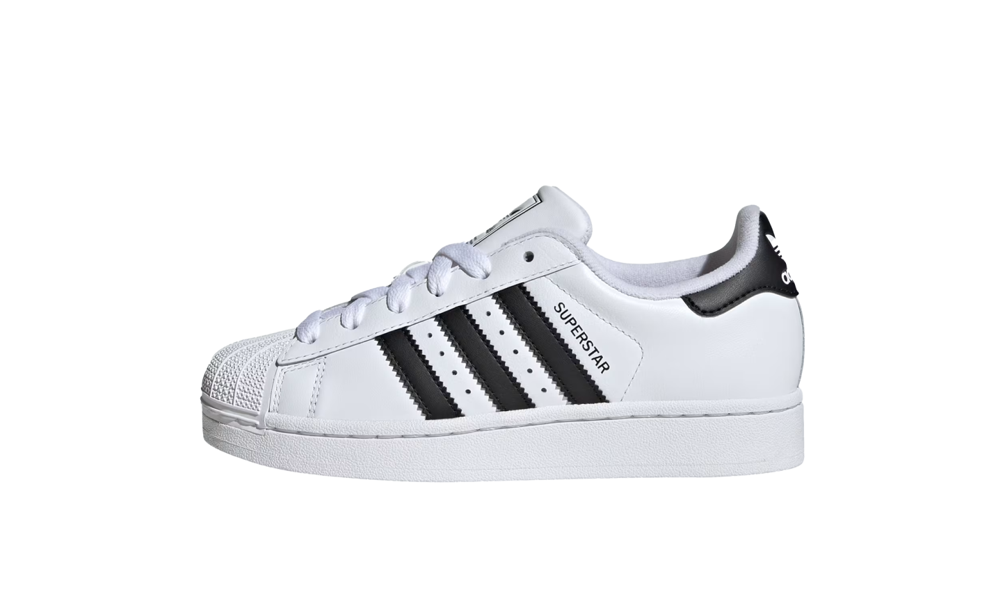 The Superstar II GS 'White Black' shoe features a classic two-tone design, offering a versatile and timeless addition to any sneaker collection.