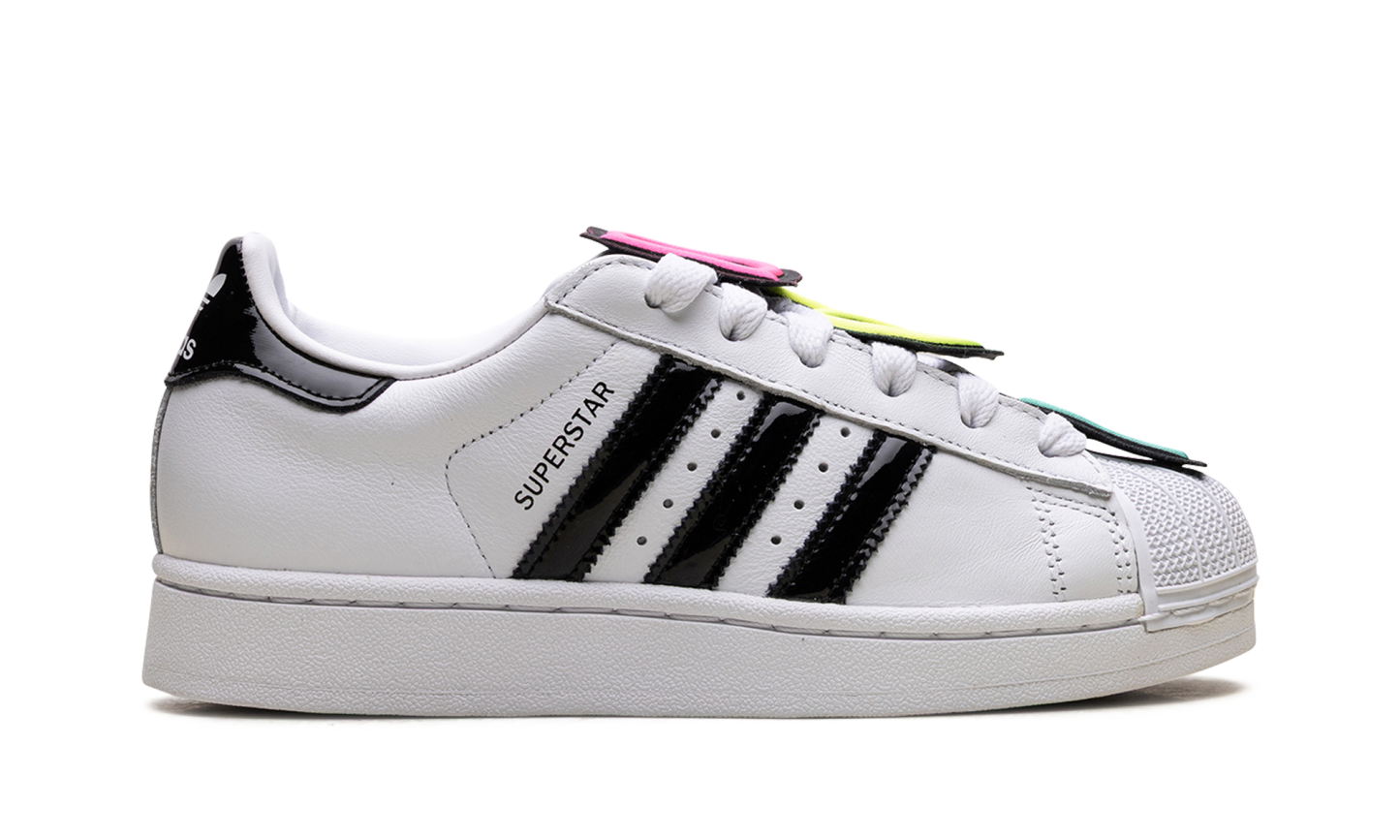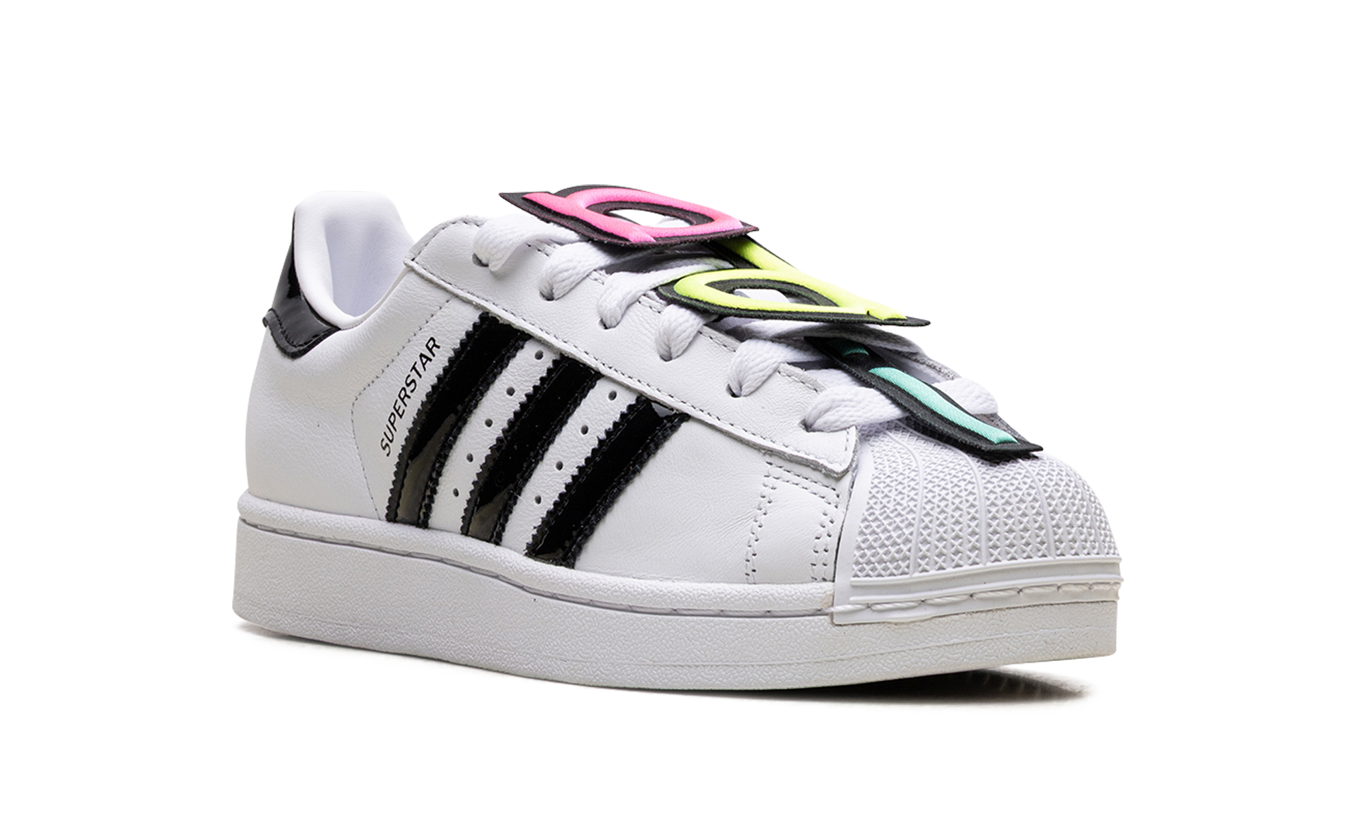 The Superstar II 'Jeremy Scott - White' shoe features a unique design by Jeremy Scott, blending classic Adidas Superstar II style with his iconic bold aesthetic in a clean white colorway.