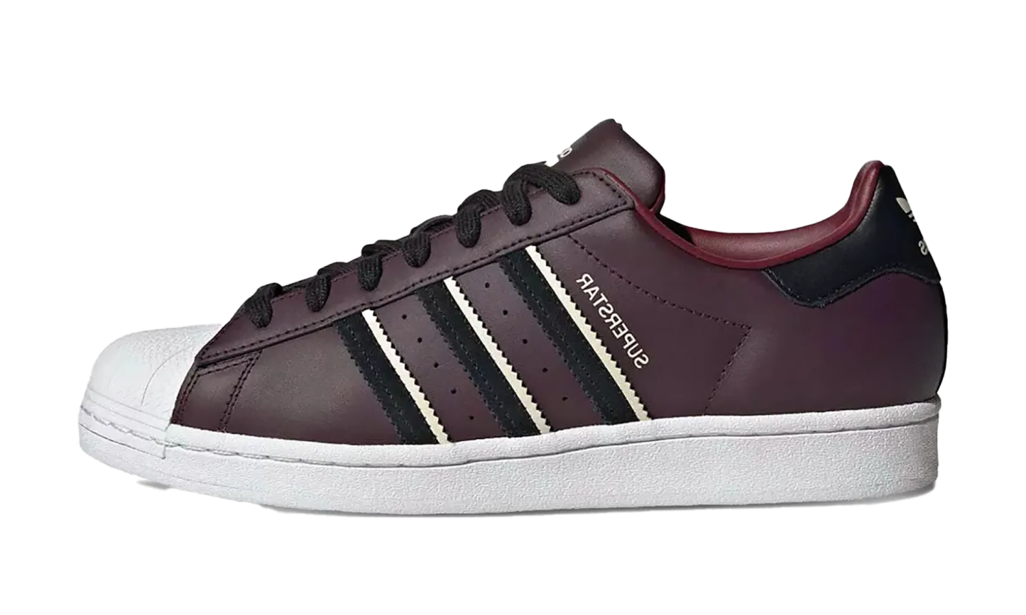 The Superstar 'Red' shoe features a classic design in a vibrant red colorway, offering a bold and timeless addition to any sneaker collection.