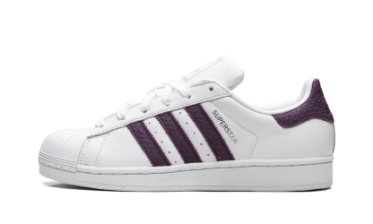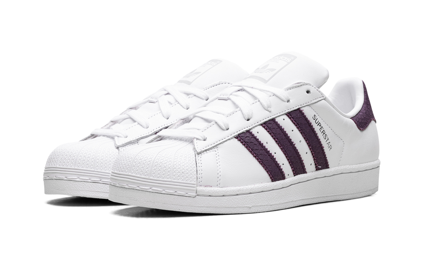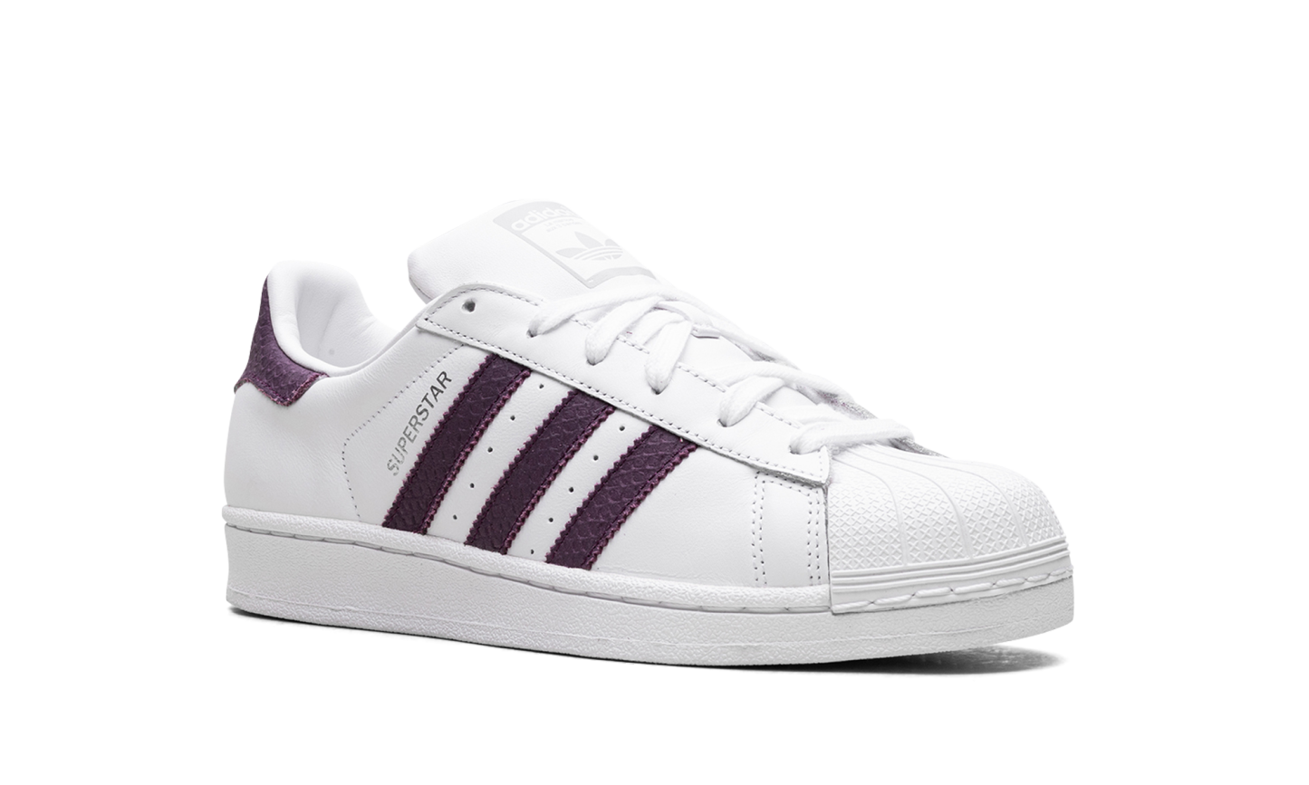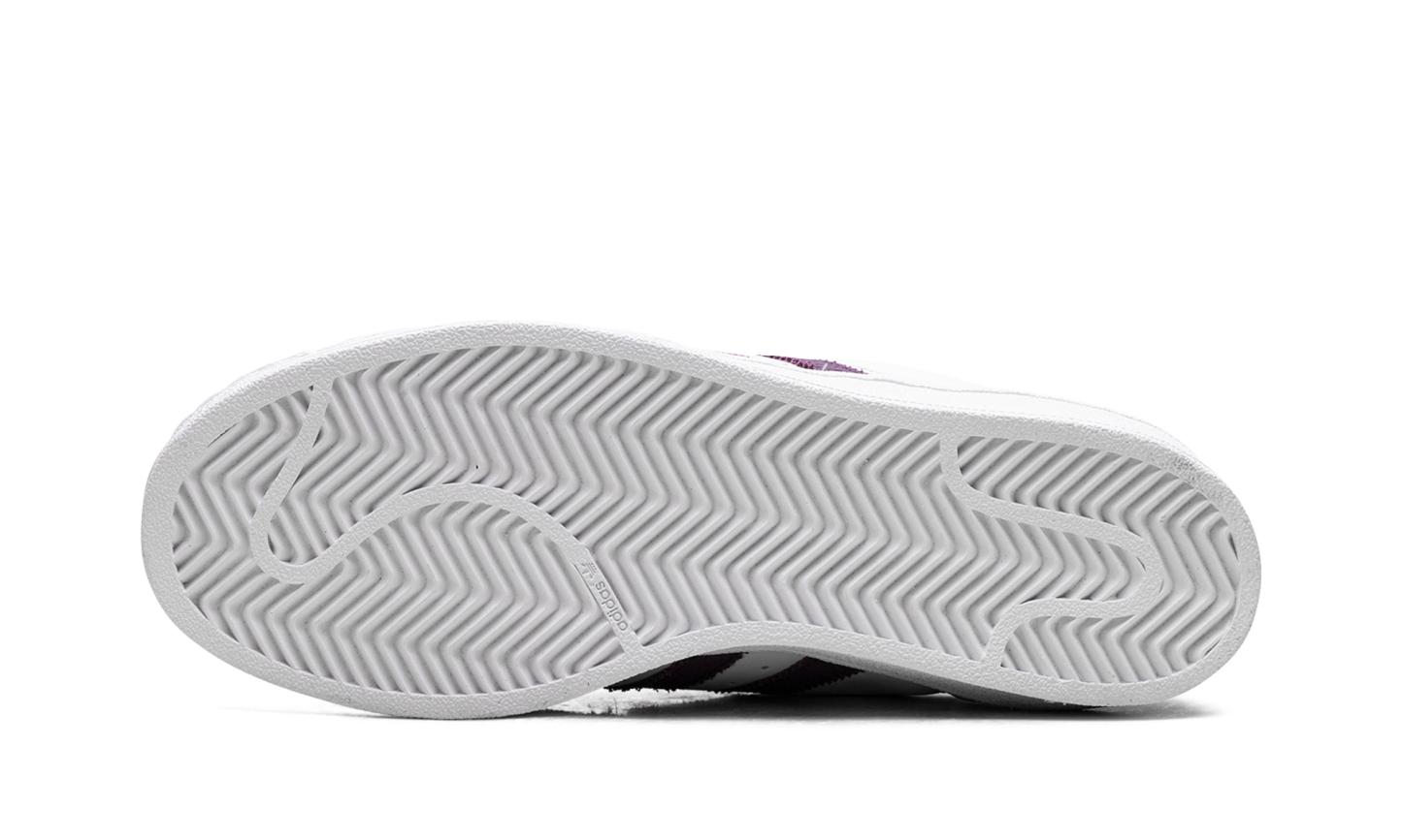 The Superstar WMNS 'White Red Night' shoe features a classic design with a clean white base, bold red accents, and subtle night-inspired details, offering a versatile and stylish addition to any sneaker collection.