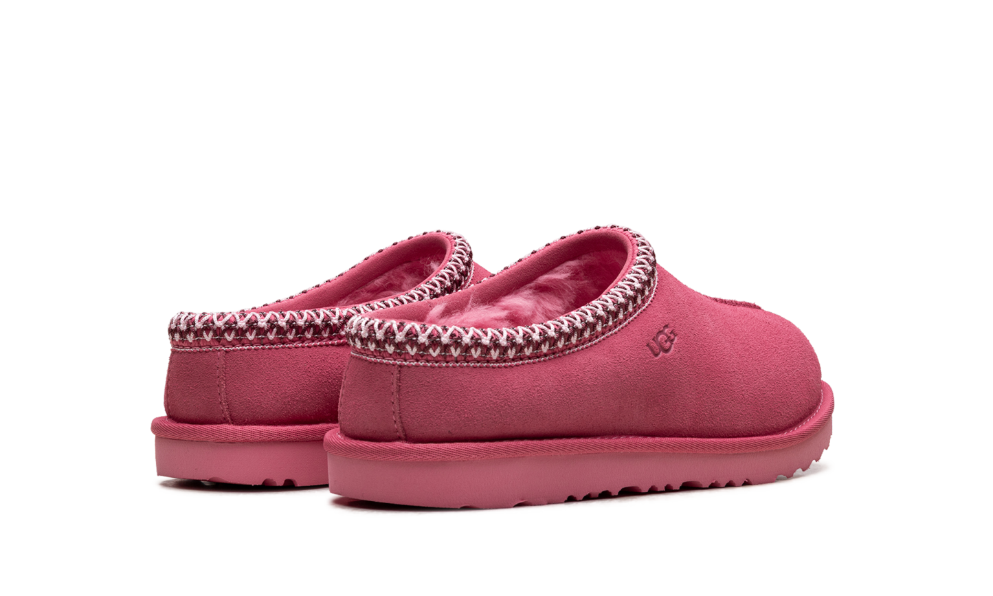 Step into ultimate warmth with the UGG Tasman II Slipper Kids "Pink Bloom". This popular slipper features a soft suede upper in a vibrant pink hue and a plush sheepskin lining for luxurious comfort. The durable outsole and signature braid trim make it ideal for running quick errands or relaxing at home, delivering cozy wear and versatile style.