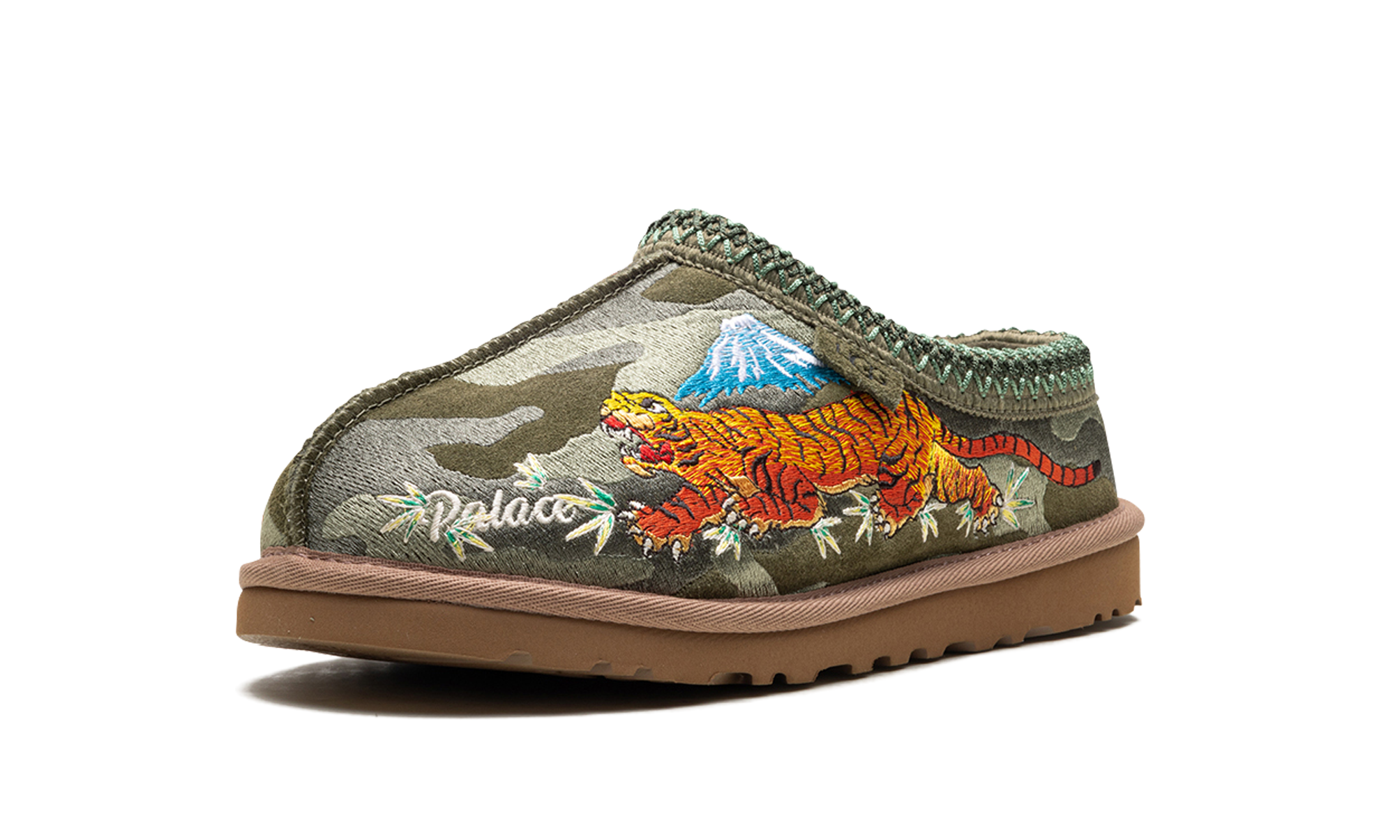 Step into exclusive streetwear comfort with the Tasman Slipper Palace "Burnt Olive Camo". This celebrated collaboration features a classic UGG slipper updated with a Palace camo pattern on the burnt olive suede. The plush wool lining and durable outsole deliver ultimate warmth and a bold aesthetic, perfect for making a statement indoors or out.