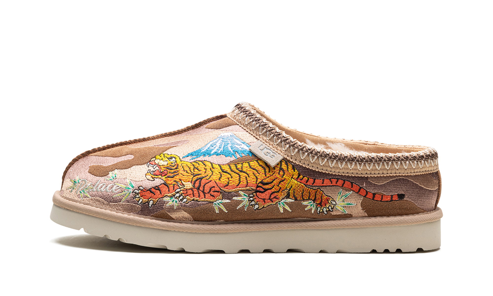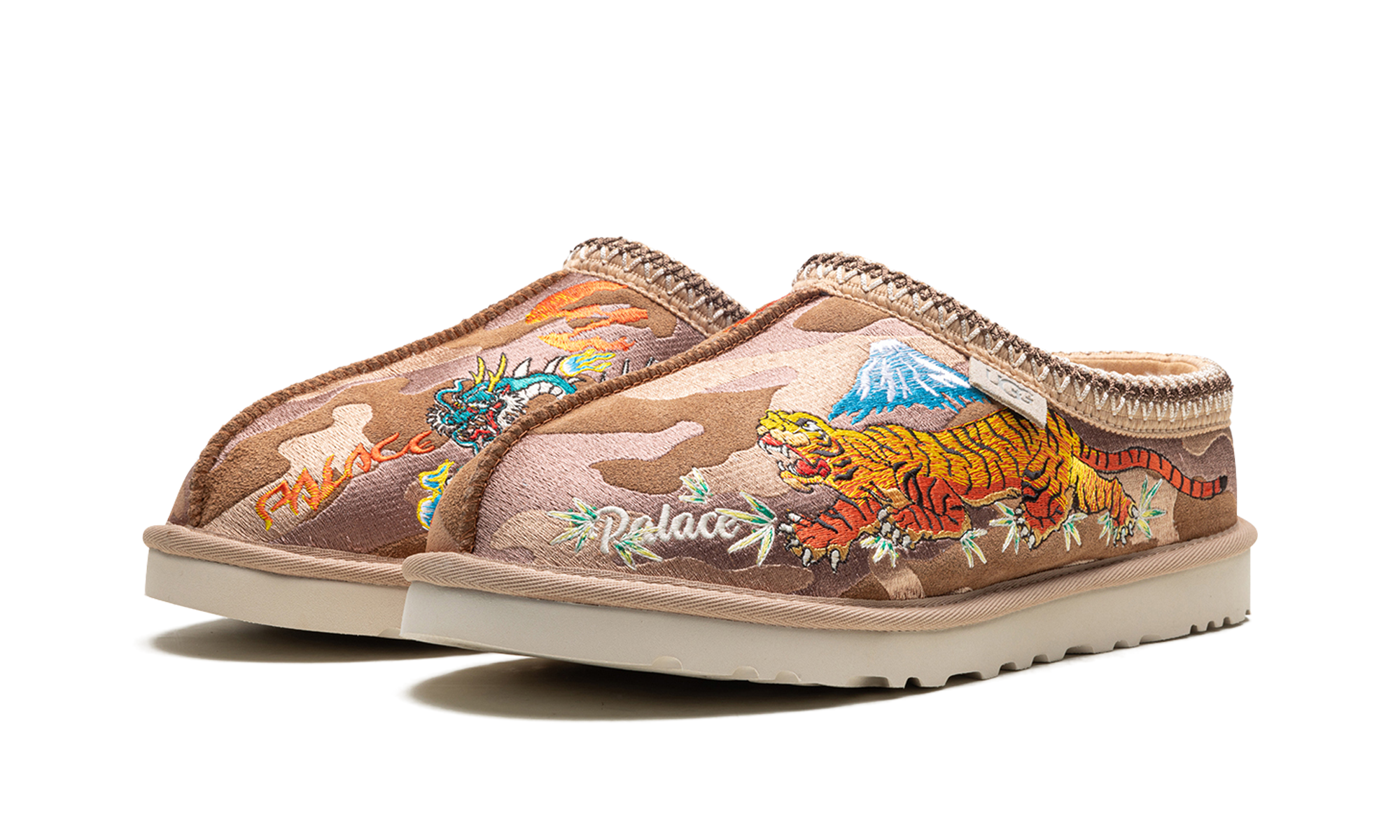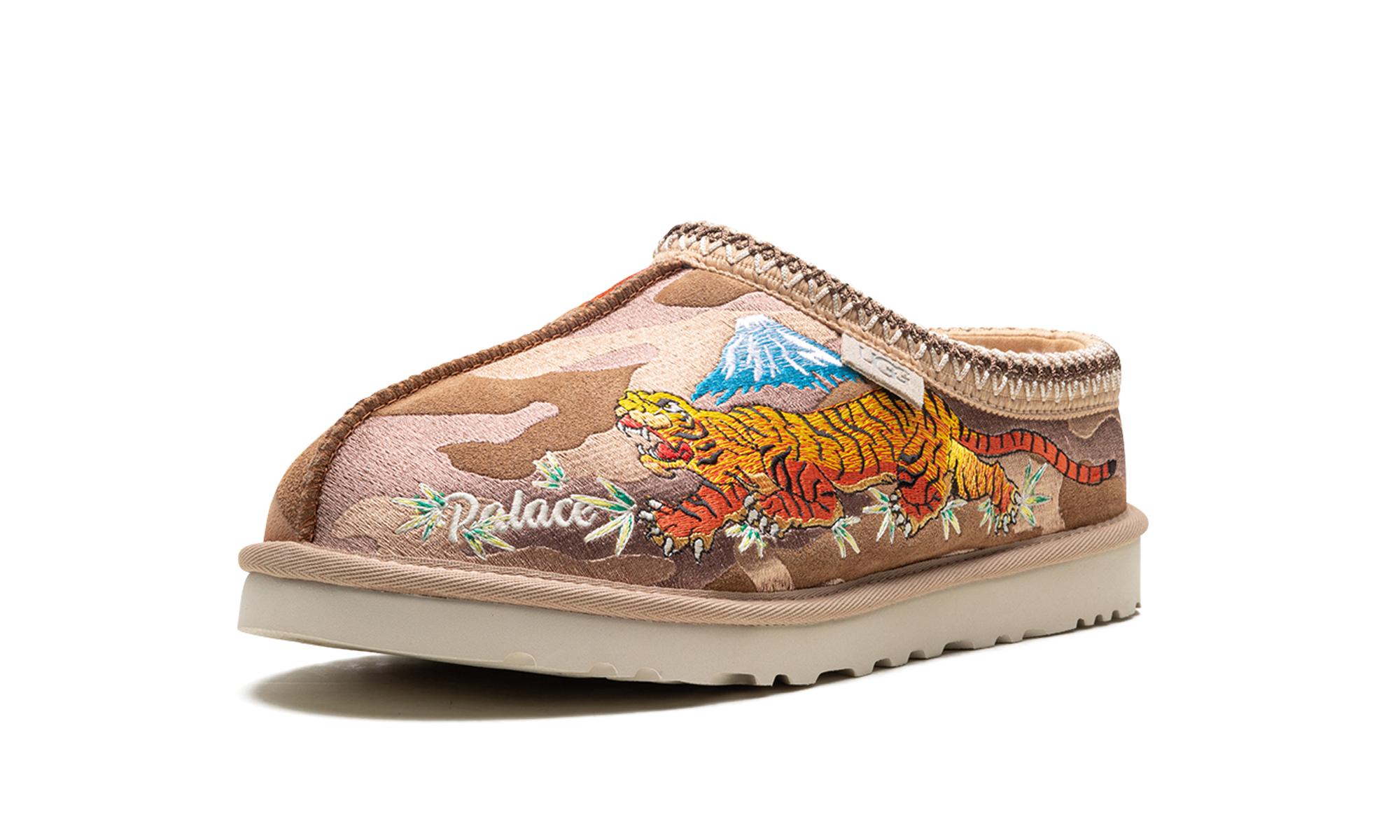 Step into exclusive streetwear comfort with the Tasman Slipper Palace "Chestnut Camo". This celebrated collaboration features a classic UGG slipper updated with a Palace camo pattern on the chestnut suede. The plush wool lining and durable outsole deliver ultimate warmth and a bold aesthetic, perfect for making a statement indoors or out.