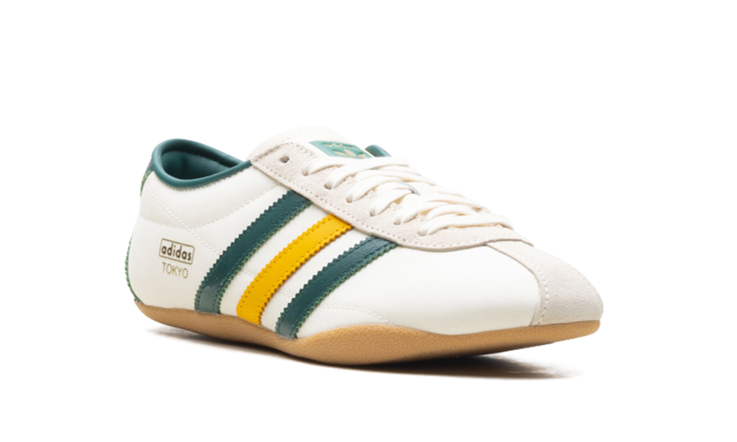 Step into a sleek, throwback look with the Adidas Tokyo Wmns "Cream White / Collegiate Green". This celebrated women's sneaker features a creamy white upper complemented by bold Collegiate Green accents. Its low-profile silhouette delivers a comfortable, lightweight fit and a versatile aesthetic that’s perfect for making a sophisticated statement every day.
