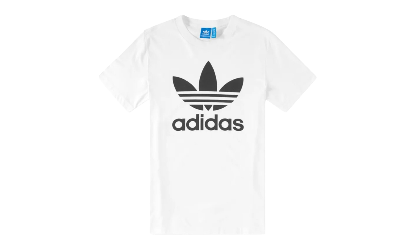 Show your authentic style in the Adidas Trefoil Tee, a classic garment in the essential "White/Black" colorway. This timeless crewneck is crafted from soft, premium 100% cotton jersey fabric for effortless, all-day comfort. The iconic Trefoil logo is proudly displayed large across the chest in contrasting black, making a bold, simple statement that signals your connection to the brand that shaped sport. An absolute essential for casual and streetwear looks!