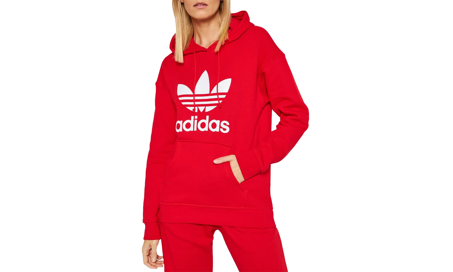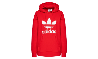Get comfortable in the vibrant adidas TRF Hoodie Wmns 'Vivid Red', your new go-to pullover. This classic "Trefoil Hoodie," part of the adidas Originals collection, is built for all-day comfort with a soft French terry fabric (often 100% cotton or a cotton/recycled polyester blend). The bold Vivid Red color is accented by the iconic white Trefoil logo on the chest. Featuring a drawcord-adjustable hood and a roomy kangaroo pocket, this regular-fit hoodie offers cozy, effortless style.