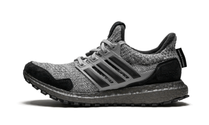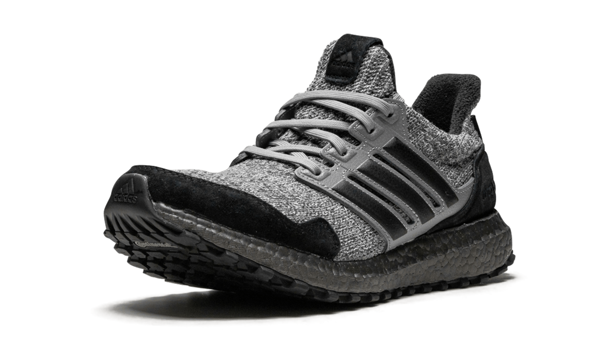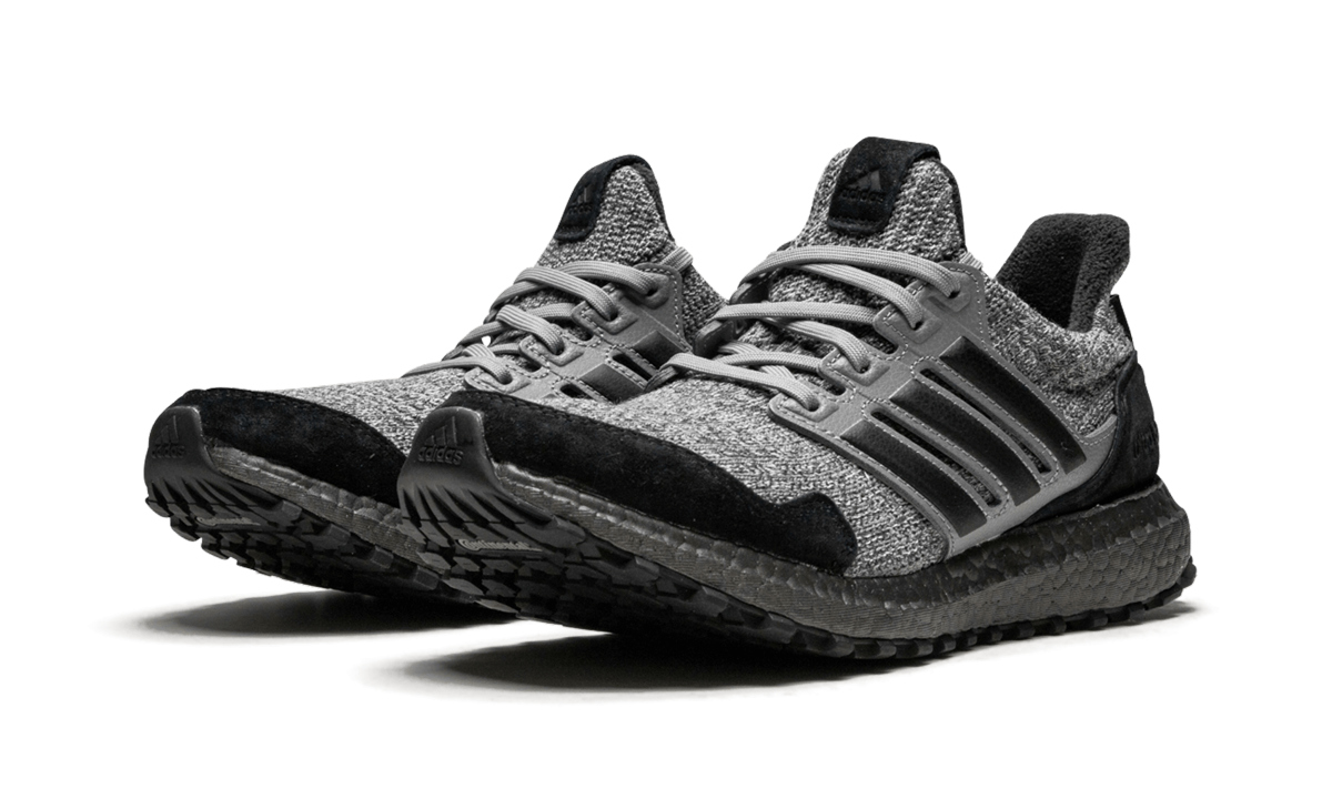 The Game of Thrones x adidas Ultra Boost “House Stark” is one of the six Ultra Boost colorways included in the epic collaboration between adidas and the popular HBO series. This colorway represents the Stark family with an appropriate color palette of dark grey and black to mirror the look of Stark's grey-skied homeland. The premium construction features a heather grey Primeknit upper with black suede panels for the heel counter and toe panel. The cage is featured in grey leather with black stripes, while the Boost midsole is painted in charcoal grey. The more rugged trail sole of the Ultra Boost is included, inspired by the rugged terrain of the Stark family’s territory. Tabs on the heels include the iconic GoT phrase, “WINTER IS COMING.” The Game of Thrones x adidas Ultra Boost “House Stark” released on March 22, 2019.