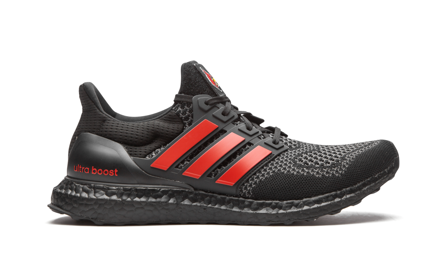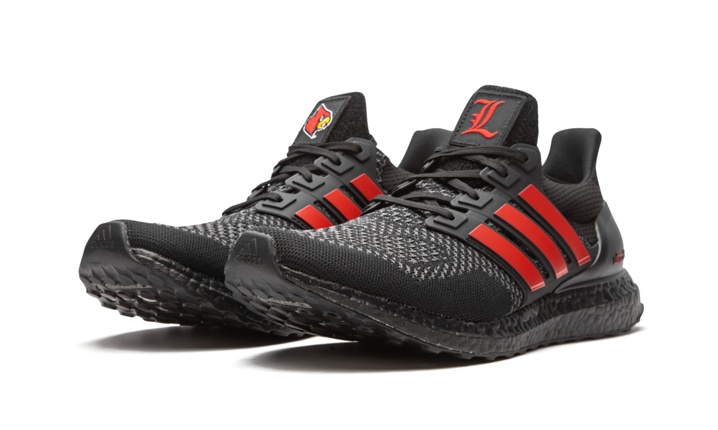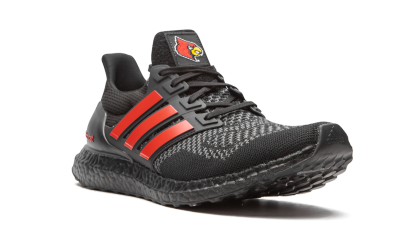 The adidas Ultra Boost 1.0 “Louisville” is a collegiate colorway of the extremely comfortable running shoe for the Louisville Cardinals by adidas for its “NCAA Pack.” Released by adidas ahead of the 2020 NCAA College Football season, the “Louisville” colorway salutes the school’s football team and other successful sports teams. A lightweight and airy speckled black and white Primeknit material forms the base of the upper. Black mesh detailing can be found around the collar and heel. Adidas’s signature Three Stripes branding appears in Cardinal Red on either side as a nod to the primary color of the Cardinals. Other overtures to the school include a removable patch of its angry Cardinal mascot on the right shoe and an “L” logo on the left shoe. Classic Ultra Boost detailing in red text appears on the black heel cup. Adidas keeps the stealthy appearance of the shoe intact by painting its responsive Boost cushioning technology in black. Release date: September 4, 2020.