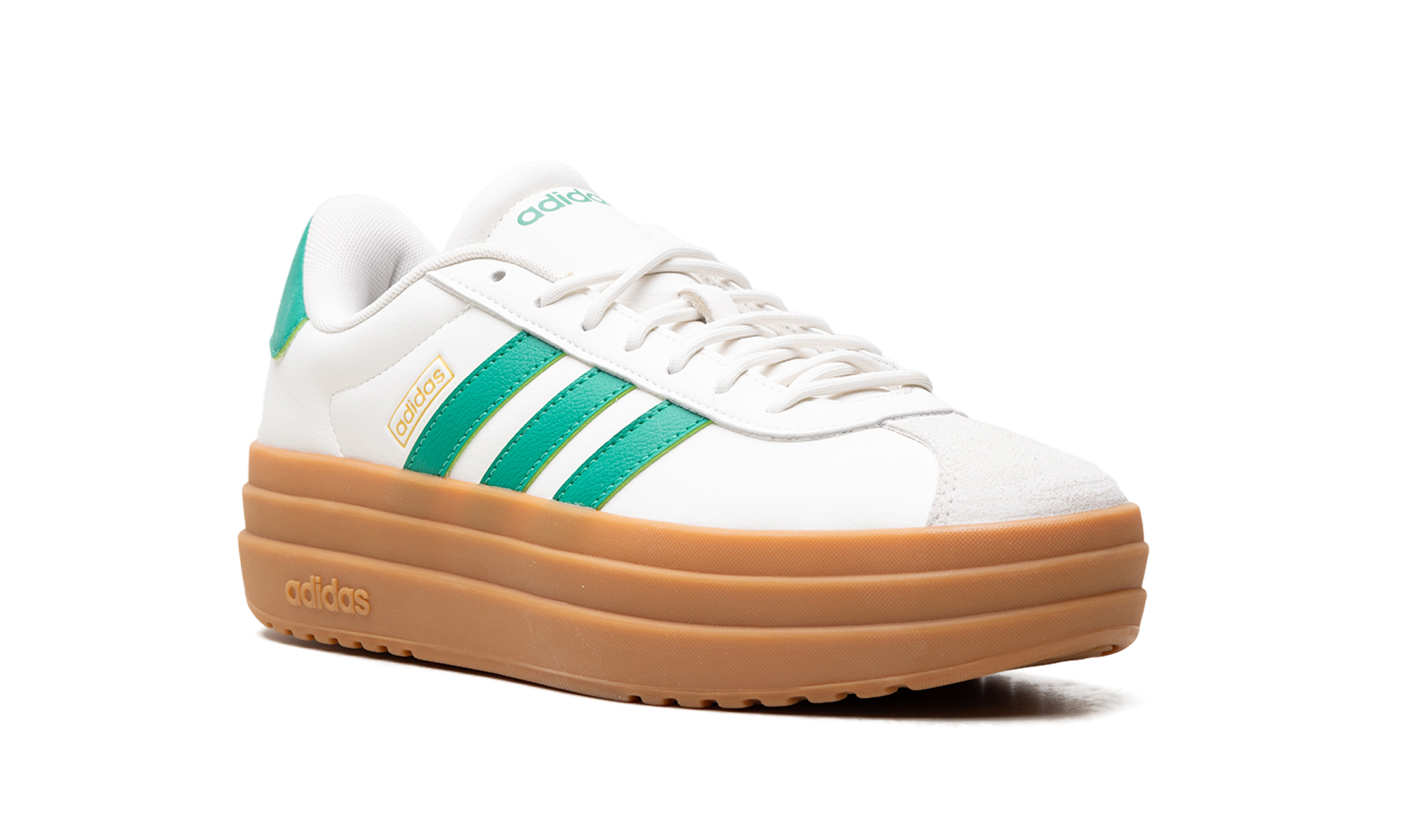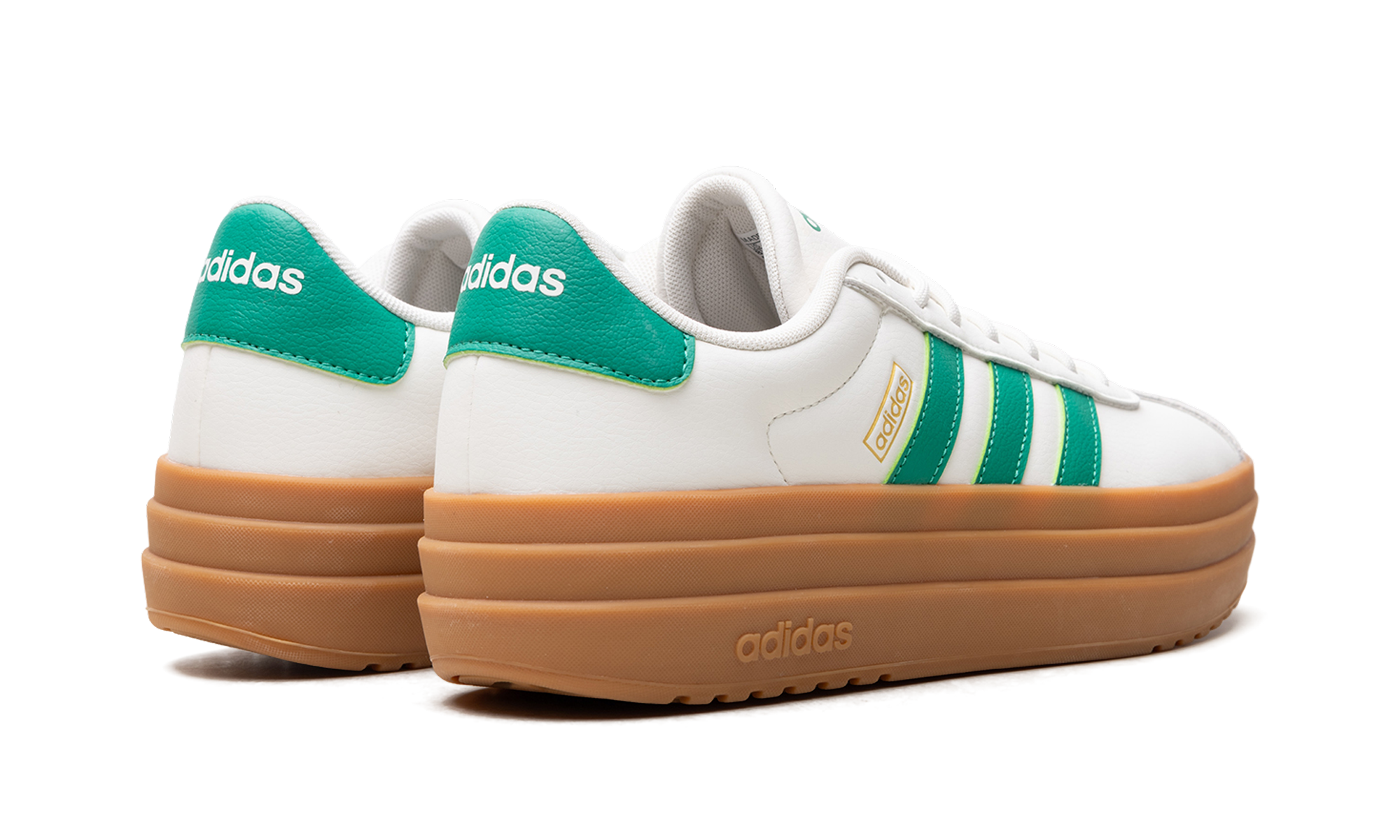 Step up your sneaker game with the adidas VL Court Bold, our striking "Platform Classic" that perfectly blends iconic court style with bold elevation. The smooth synthetic upper in crisp Core White is instantly elevated by vibrant Court Green and Gold Metallic accents, delivering instant street credibility. Featuring a comfortable textile lining and EVA sockliner, this shoe ensures all-day comfort. The durable rubber platform outsole lifts your look, making this design effortlessly versatile for any casual adventure. Feel confident and excited about your new go-to shoe!