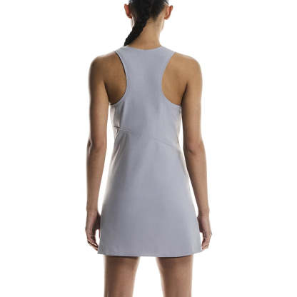 The Court Tennis Dress combines sleek design with high-performance features, making it perfect for the court. The racerback design allows for a full range of motion, ensuring unrestricted movement during play. A high neckline adds a touch of modern style and extra coverage, while the wrap-around style provides a flattering and dynamic silhouette. This dress not only offers a fashionable look but also enhances comfort and functionality, making it an excellent choice for serious tennis players.