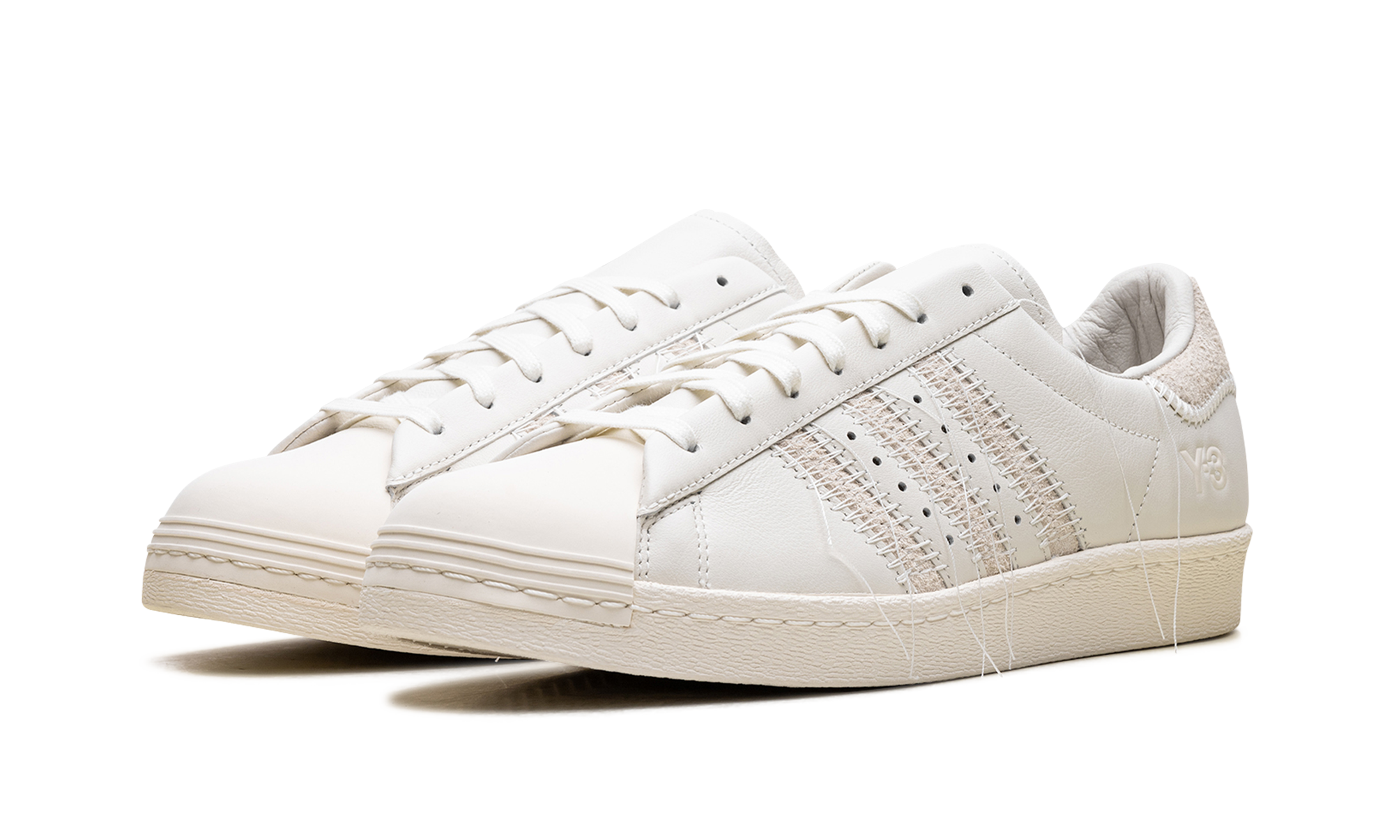 The Y-3 Superstar 'White' shoe blends classic Adidas Superstar style with Y-3's avant-garde design, featuring a minimalist white aesthetic.