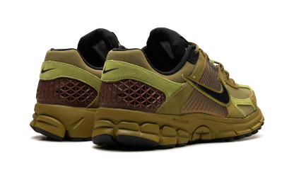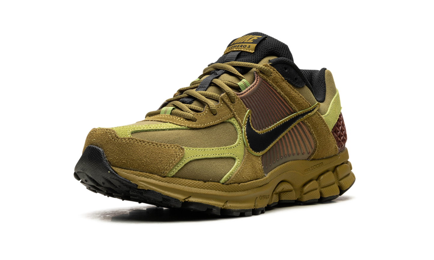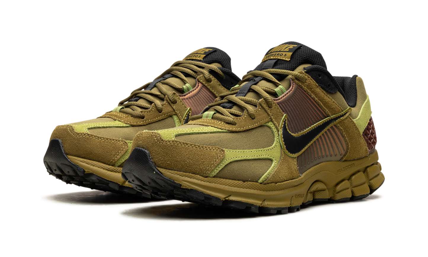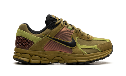 The Nike Zoom Vomero 5 "Pacific Moss" is a colorway of the retro performance running and lifestyle shoe with an earth tone design. Debuted in 2010, the Zoom Vomero 5 is a core component of the success of the Y2K sneaker trend that began in 2022 and 2023. As for the colorway at hand, the upper features a combination of canvas and suede panels in a Pacific Moss hue. Contrasting Pear-colored accenting can be found on the TPU overlays on the quarter panel and on the heel counter. A glossy black Swoosh can be seen on both sides of the shoe. “Nike Vomero 5” detailing is located on the tongue. Underfoot, a Cushlon foam midsole in Pacific Moss completes the look. Pacific Moss