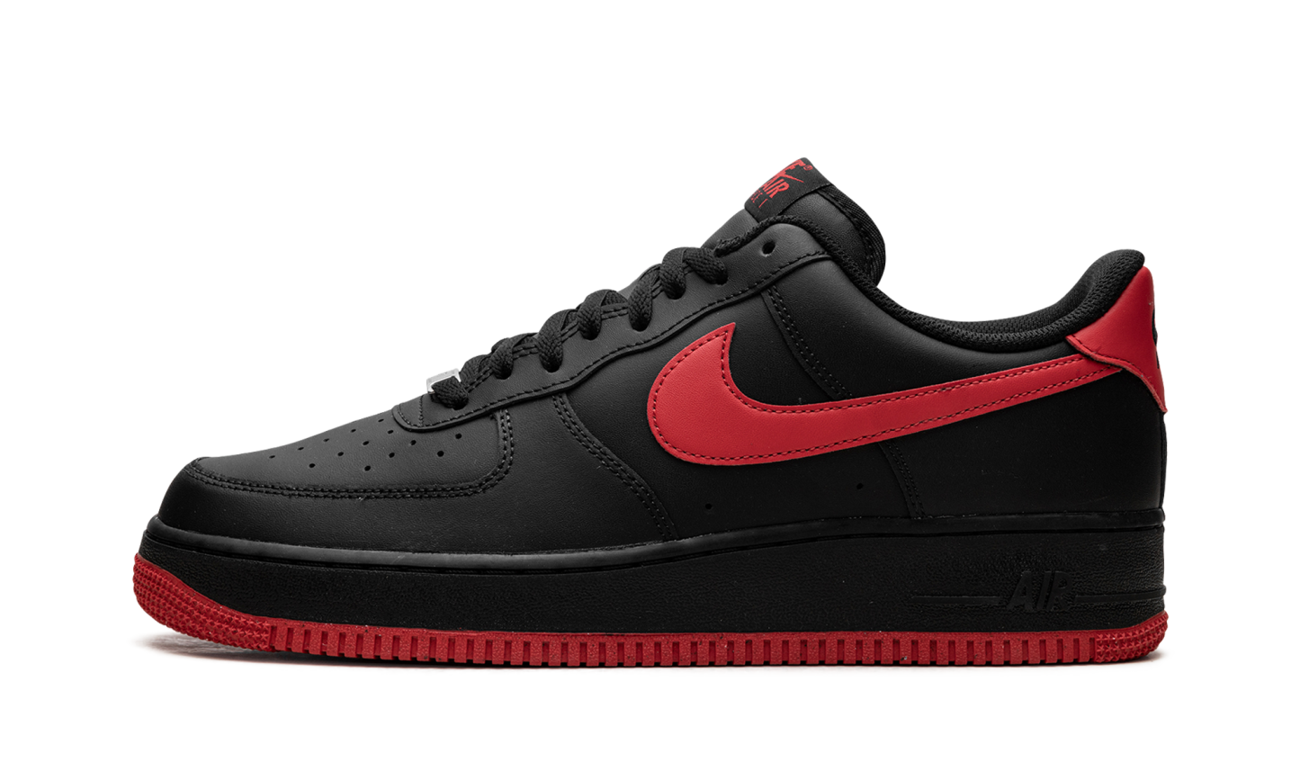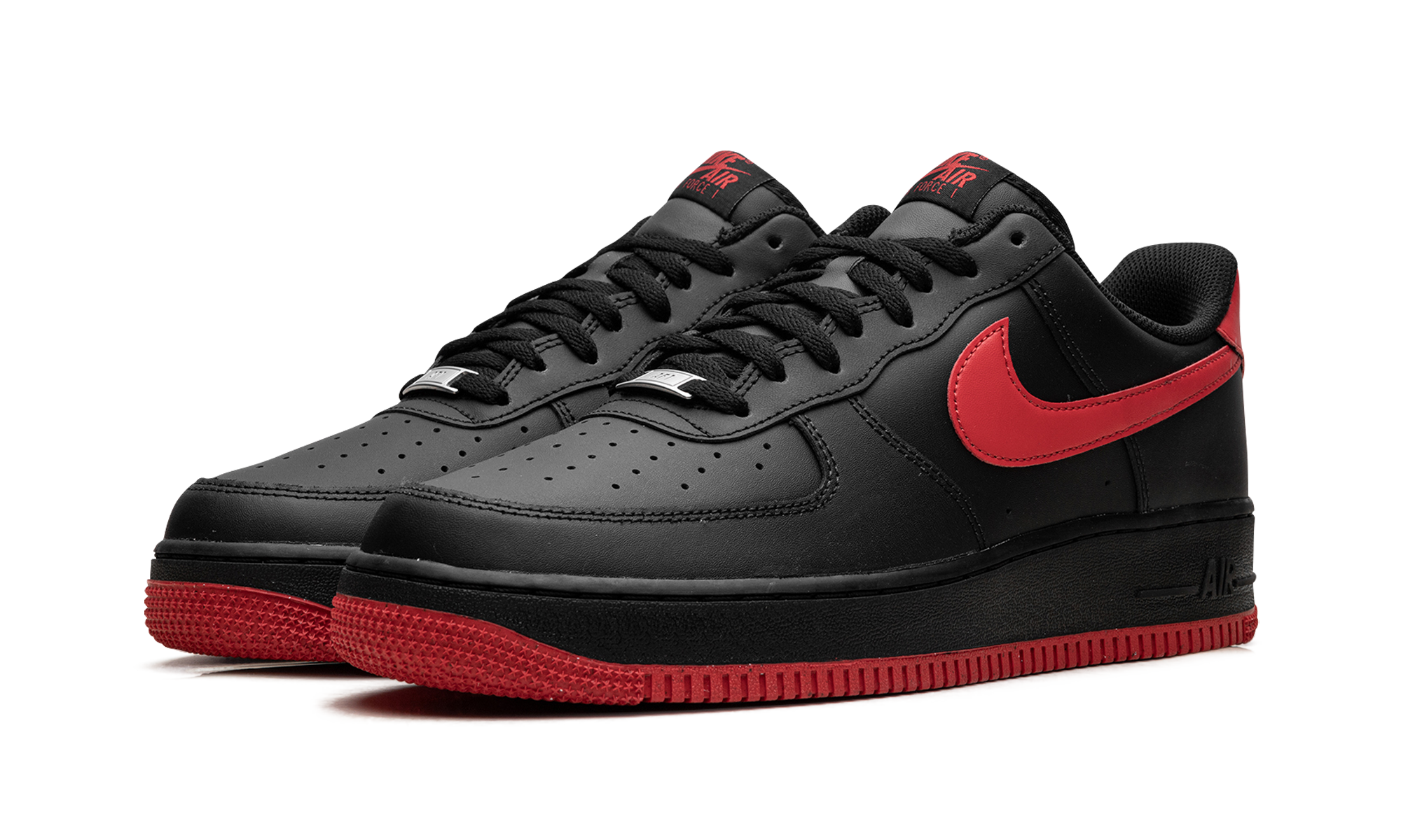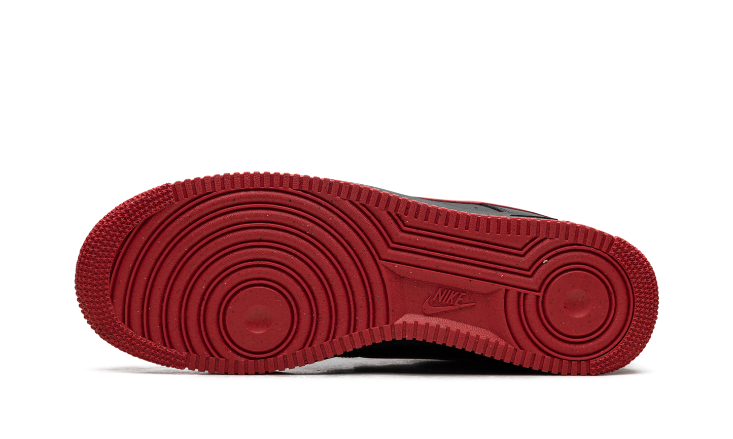 The Vamps Air Force 1 Low '07 LV8 by Nike features a black-suede upper paired with contrasting deep red on the sole, heel, and side Swoosh. The low-top design incorporates perforations on the toe box for breathability and a padded collar for comfort. On the side of the heel of the midsole, there's a raised "Air" logo in black. The durable rubber outsole and heritage-inspired design are a nod to Nike’s rich basketball history. Vamps