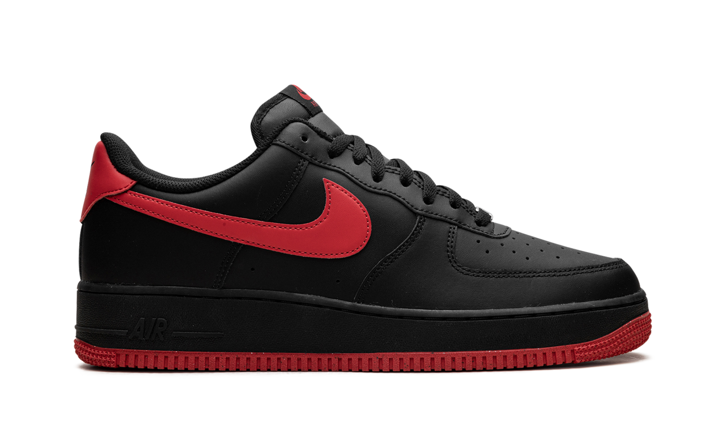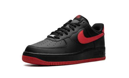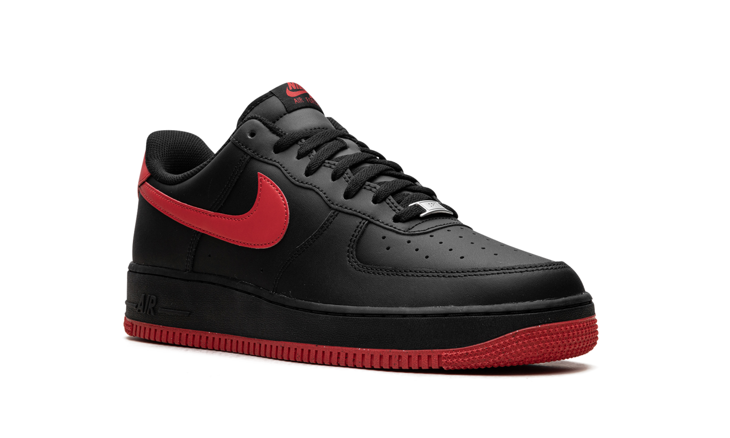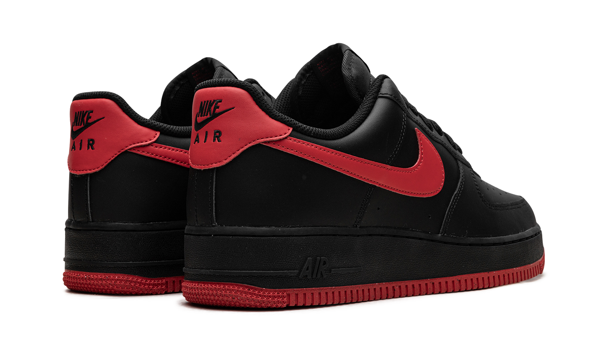 The Vamps Air Force 1 Low '07 LV8 by Nike features a black-suede upper paired with contrasting deep red on the sole, heel, and side Swoosh. The low-top design incorporates perforations on the toe box for breathability and a padded collar for comfort. On the side of the heel of the midsole, there's a raised "Air" logo in black. The durable rubber outsole and heritage-inspired design are a nod to Nike’s rich basketball history. Vamps
